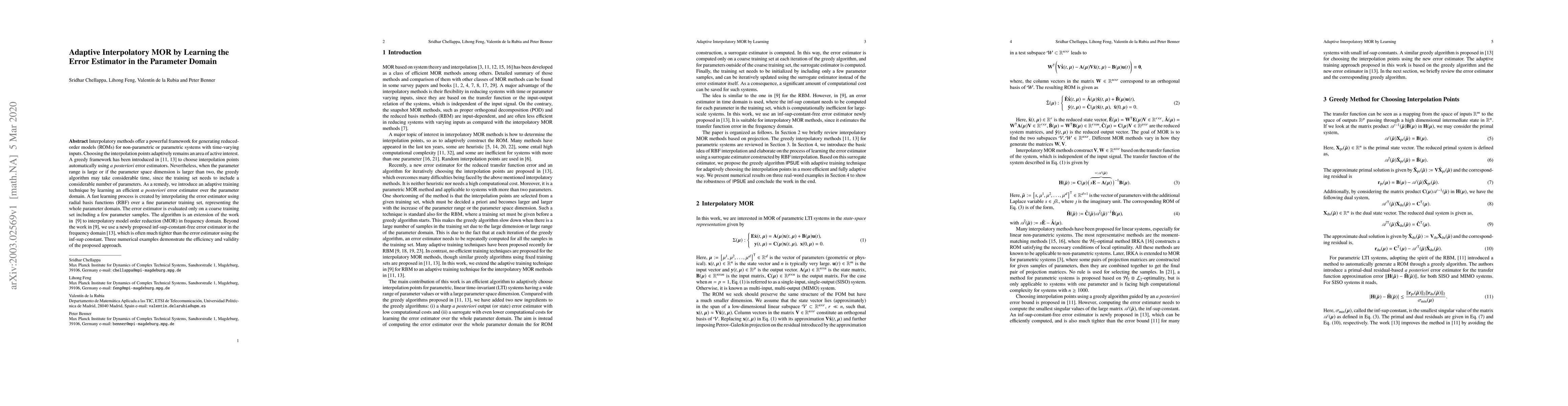This paper proposes an adaptive interpolatory model order reduction (MOR) method that learns an efficient a posteriori error estimator over the parameter domain to speed up the selection of interpolation points. The method employs radial basis functions to interpolate the error estimator from a fine training set, reducing computational time compared to traditional greedy algorithms.