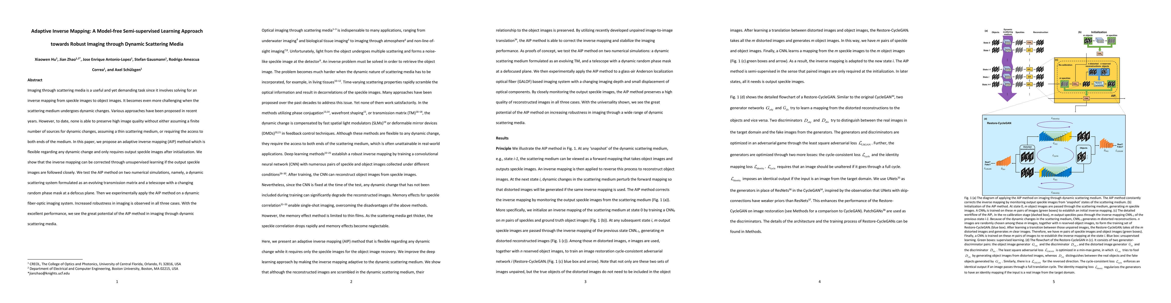 Imaging through scattering media is a useful and yet demanding task since it involves solving for an inverse mapping from speckle images to object images. It becomes even more challenging when the scattering medium undergoes dynamic changes. Various approaches have been proposed in recent years. However, to date, none is able to preserve high image quality without either assuming a finite number of sources for dynamic changes, assuming a thin scattering medium, or requiring the access to both ends of the medium. In this paper, we propose an adaptive inverse mapping (AIP) method which is flexible regarding any dynamic change and only requires output speckle images after initialization. We show that the inverse mapping can be corrected through unsupervised learning if the output speckle images are followed closely. We test the AIP method on two numerical simulations, namely, a dynamic scattering system formulated as an evolving transmission matrix and a telescope with a changing random phase mask at a defocus plane. Then we experimentally apply the AIP method on a dynamic fiber-optic imaging system. Increased robustness in imaging is observed in all three cases. With the excellent performance, we see the great potential of the AIP method in imaging through dynamic scattering media.