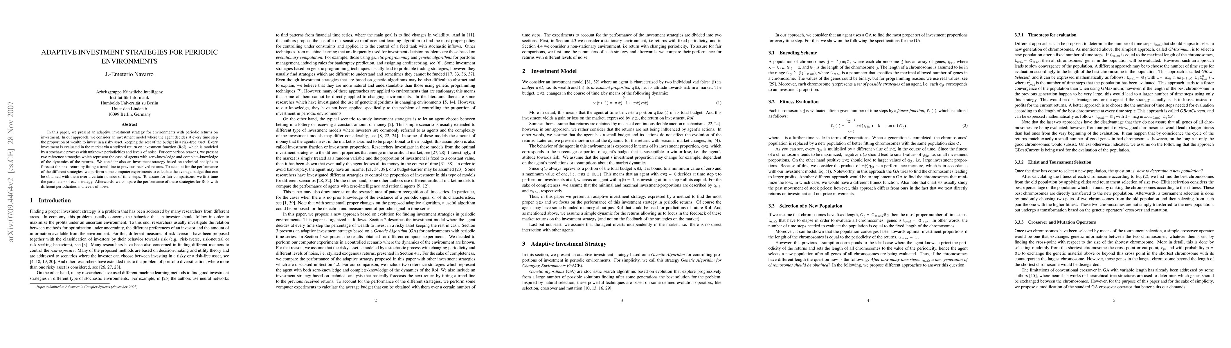 This paper proposes an adaptive investment strategy for environments with periodic returns, comparing it against zero-knowledge and complete-knowledge baselines, as well as a technical analysis approach. Computer experiments are conducted to evaluate the average budget outcomes of each strategy under varying periodicities and noise levels.
