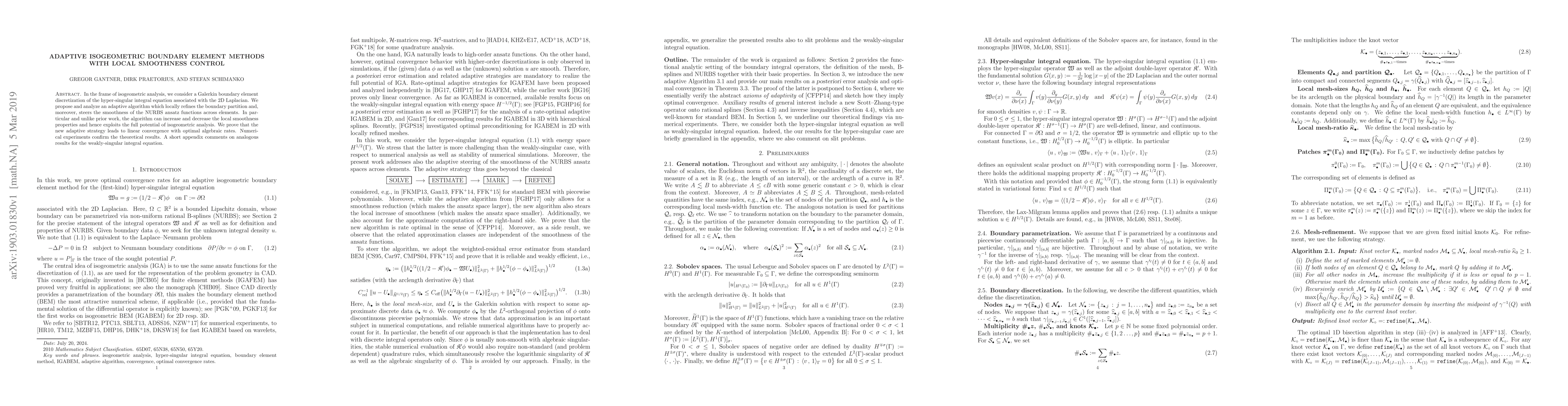 In the frame of isogeometric analysis, we consider a Galerkin boundary element discretization of the hyper-singular integral equation associated with the 2D Laplacian. We propose and analyze an adaptive algorithm which locally refines the boundary partition and, moreover, steers the smoothness of the NURBS ansatz functions across elements. In particular and unlike prior work, the algorithm can increase and decrease the local smoothness properties and hence exploits the full potential of isogeometric analysis. We prove that the new adaptive strategy leads to linear convergence with optimal algebraic rates. Numerical experiments confirm the theoretical results. A short appendix comments on analogous results for the weakly-singular integral equation.