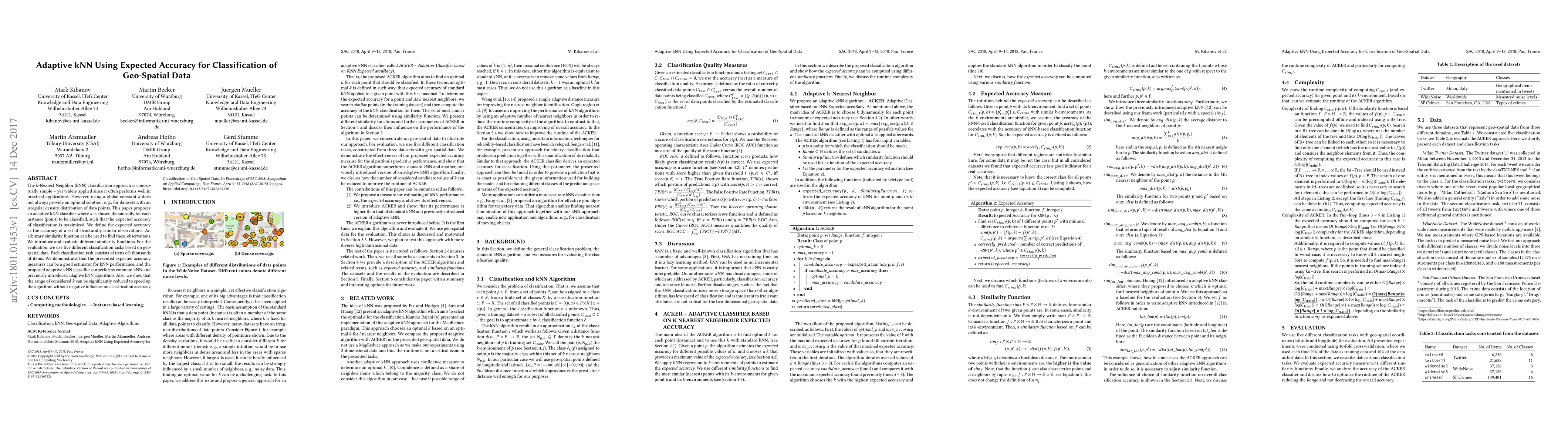 This paper proposes an adaptive kNN classifier that chooses a dynamic number of neighbors based on expected accuracy, outperforming traditional kNN and previously introduced adaptive algorithms for geo-spatial classification tasks.