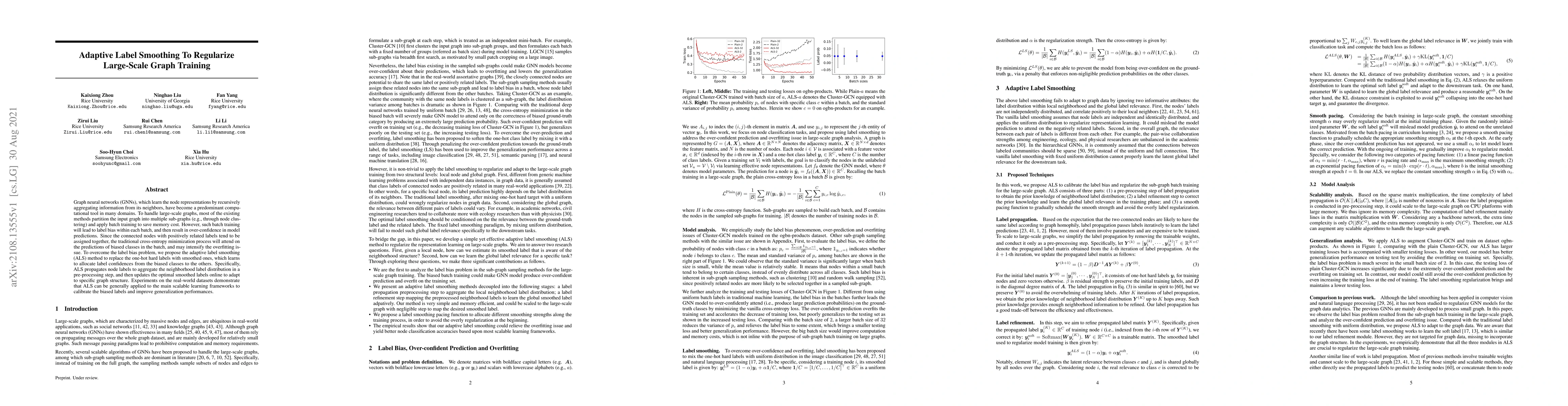 This paper proposes adaptive label smoothing (ALS) to mitigate label bias in large-scale graph neural networks (GNNs) during batch training, thereby improving model generalization. ALS dynamically adjusts label confidences to counteract overfitting, showing improved performance on real-world datasets.