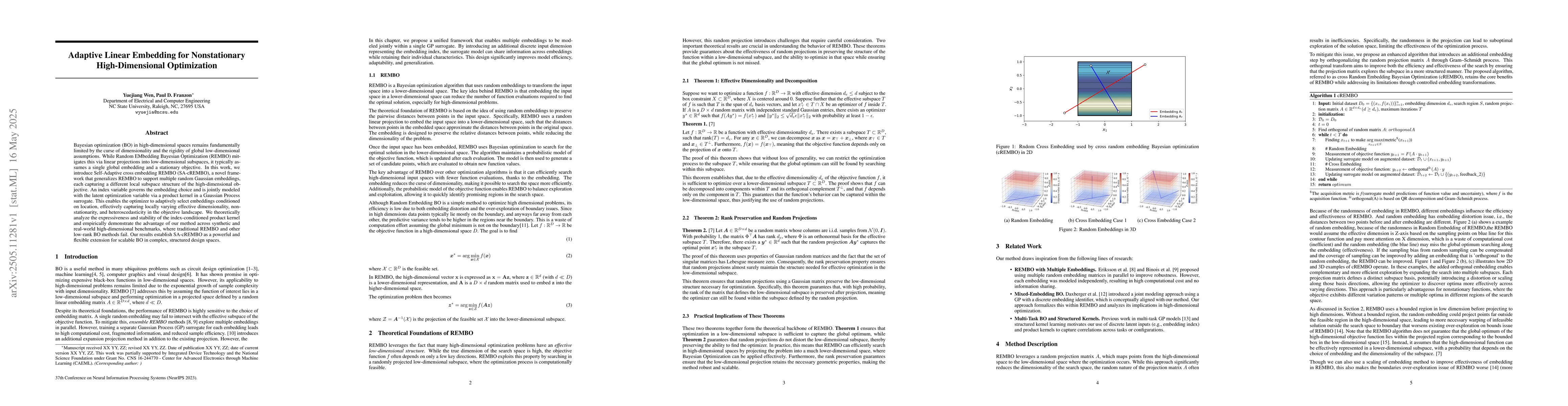 Researchers introduce Self-Adaptive embedding Bayesian Optimization (SA-REMBO), a flexible framework that captures local subspace structures in high-dimensional objectives, outperforming traditional methods on complex design spaces.