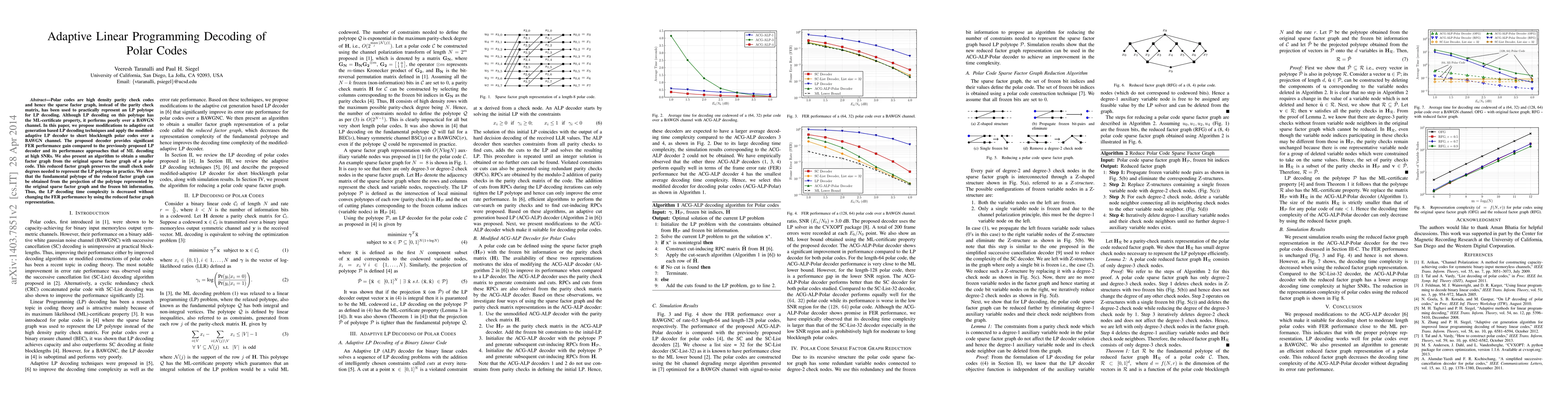 Researchers propose a modified adaptive linear programming decoder for polar codes, achieving significant FER performance gains over existing methods and approaching ML decoding at high SNRs.