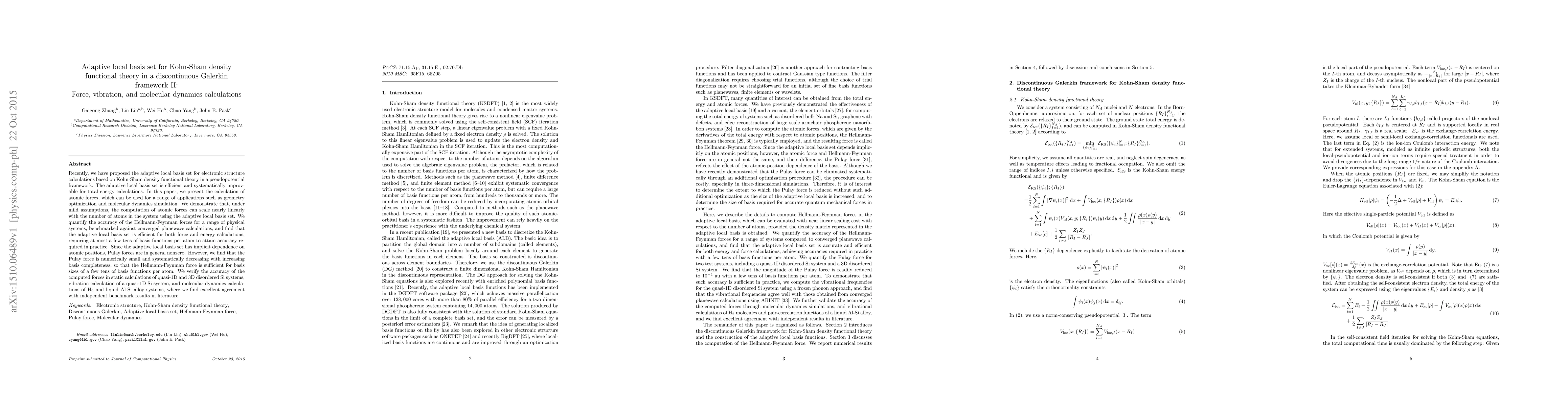 This paper extends the adaptive local basis set for Kohn-Sham density functional theory to compute atomic forces, enabling geometry optimization and molecular dynamics. The adaptive local basis set efficiently scales with system size and provides accurate Hellmann-Feynman forces, with negligible Pulay forces for practical basis sizes.