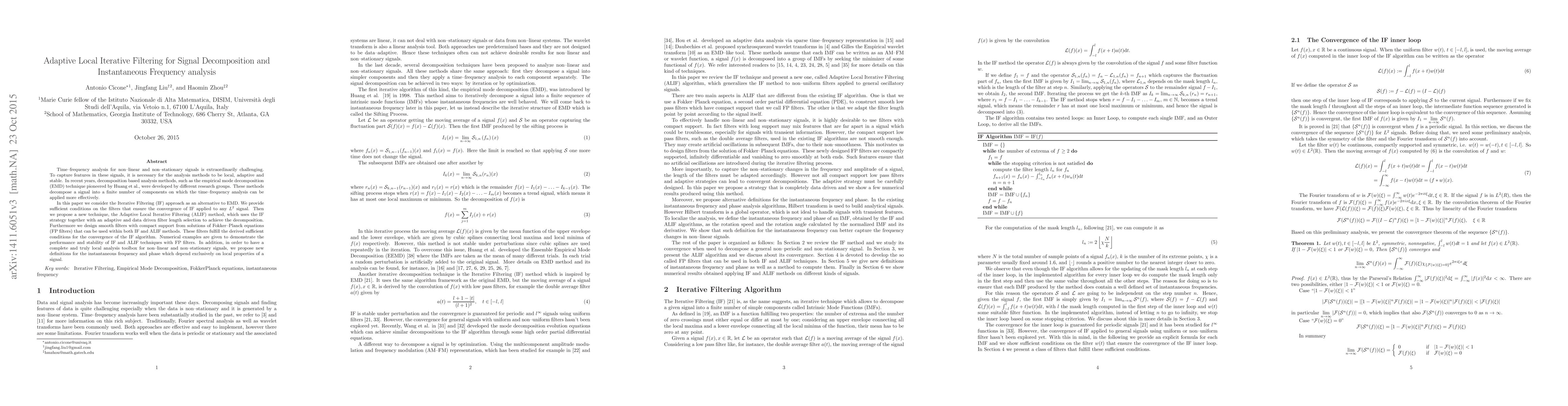 This paper introduces the Adaptive Local Iterative Filtering (ALIF) method for decomposing non-linear and non-stationary signals using iterative filters. It proposes ALIF with adaptive filter length selection and Fokker-Planck filters to ensure convergence and stability, and presents a new definition for instantaneous frequency based on local signal properties.
