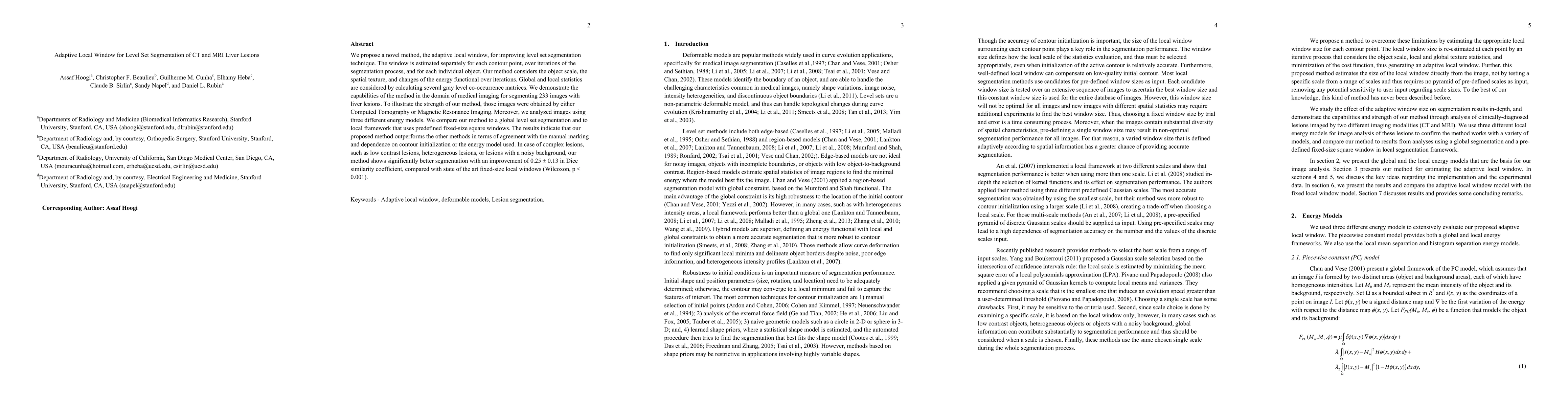 This research introduces an adaptive local window method to enhance level set segmentation for CT and MRI liver lesion images. The method, which considers object scale, spatial texture, and energy functional changes, outperforms traditional global and fixed-size local window methods, particularly for complex lesions, by improving Dice similarity coefficient by 0.25+- 0.13 (Wilcoxon, p < 0.001).