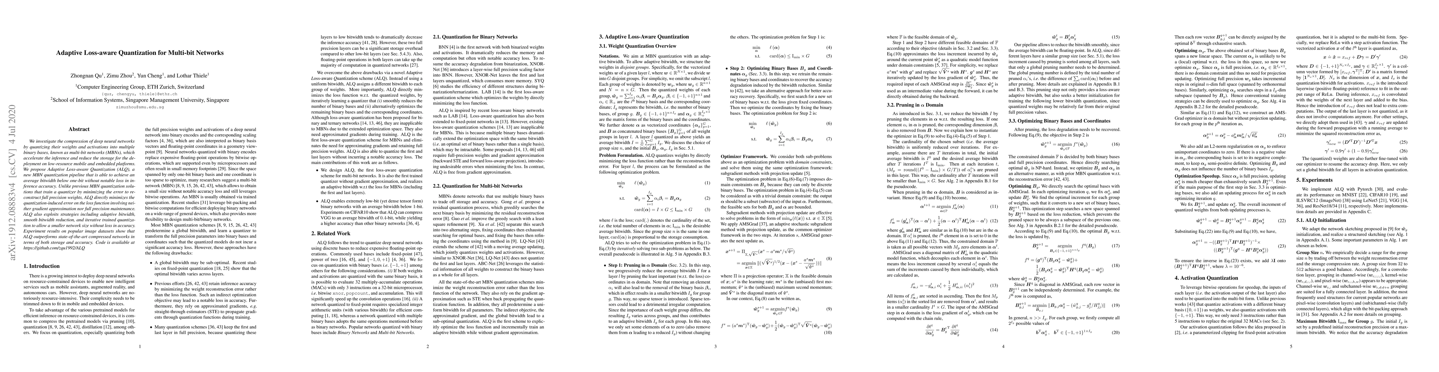 The paper proposes Adaptive Loss-aware Quantization (ALQ) for compressing deep neural networks into multi-bit networks, achieving average bitwidths below one-bit with minimal loss in accuracy. ALQ outperforms existing methods in storage efficiency and accuracy on image datasets.