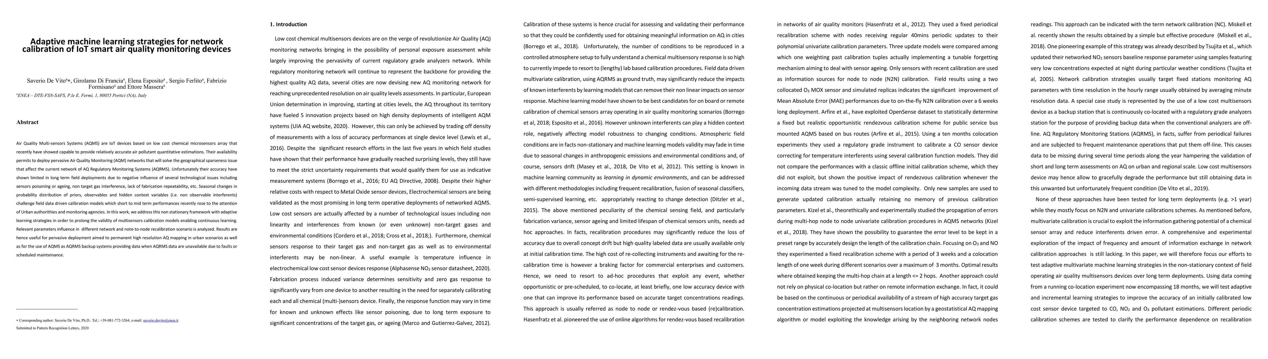 Air Quality Multi-sensors Systems (AQMS) are IoT devices based on low cost chemical microsensors array that recently have showed capable to provide relatively accurate air pollutant quantitative estimations. Their availability permits to deploy pervasive Air Quality Monitoring (AQM) networks that will solve the geographical sparseness issue that affect the current network of AQ Regulatory Monitoring Systems (AQRMS). Unfortunately their accuracy have shown limited in long term field deployments due to negative influence of several technological issues including sensors poisoning or ageing, non target gas interference, lack of fabrication repeatability, etc. Seasonal changes in probability distribution of priors, observables and hidden context variables (i.e. non observable interferents) challenge field data driven calibration models which short to mid term performances recently rose to the attention of Urban authorithies and monitoring agencies. In this work, we address this non stationary framework with adaptive learning strategies in order to prolong the validity of multisensors calibration models enabling continuous learning. Relevant parameters influence in different network and note-to-node recalibration scenario is analyzed. Results are hence useful for pervasive deployment aimed to permanent high resolution AQ mapping in urban scenarios as well as for the use of AQMS as AQRMS backup systems providing data when AQRMS data are unavailable due to faults or scheduled mainteinance.