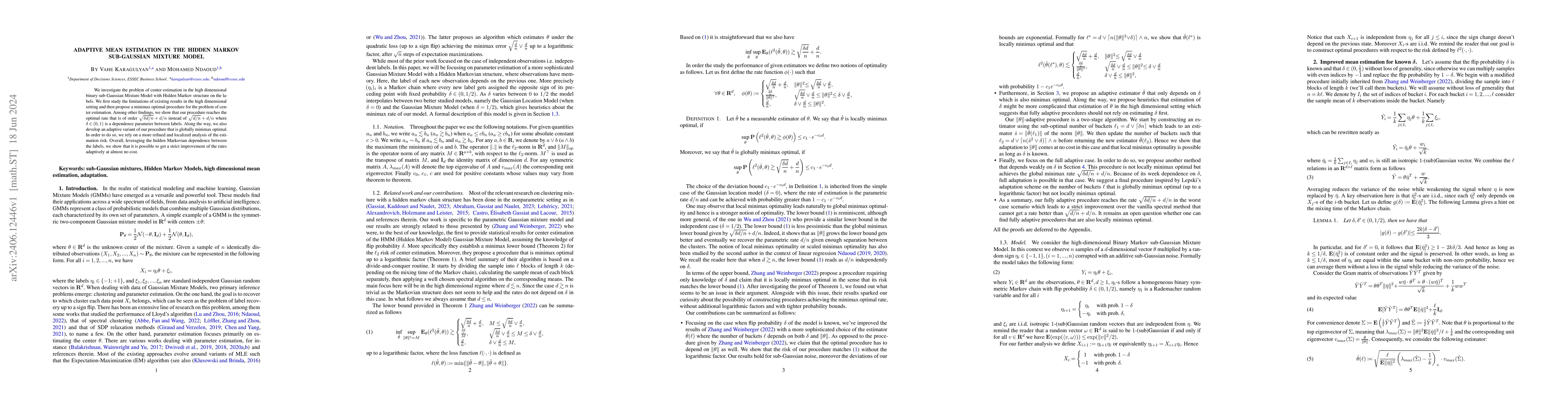 We investigate the problem of center estimation in the high dimensional binary sub-Gaussian Mixture Model with Hidden Markov structure on the labels. We first study the limitations of existing results in the high dimensional setting and then propose a minimax optimal procedure for the problem of center estimation. Among other findings, we show that our procedure reaches the optimal rate that is of order $\sqrt{\delta d/n} + d/n$ instead of $\sqrt{d/n} + d/n$ where $\delta \in(0,1)$ is a dependence parameter between labels. Along the way, we also develop an adaptive variant of our procedure that is globally minimax optimal. In order to do so, we rely on a more refined and localized analysis of the estimation risk. Overall, leveraging the hidden Markovian dependence between the labels, we show that it is possible to get a strict improvement of the rates adaptively at almost no cost.