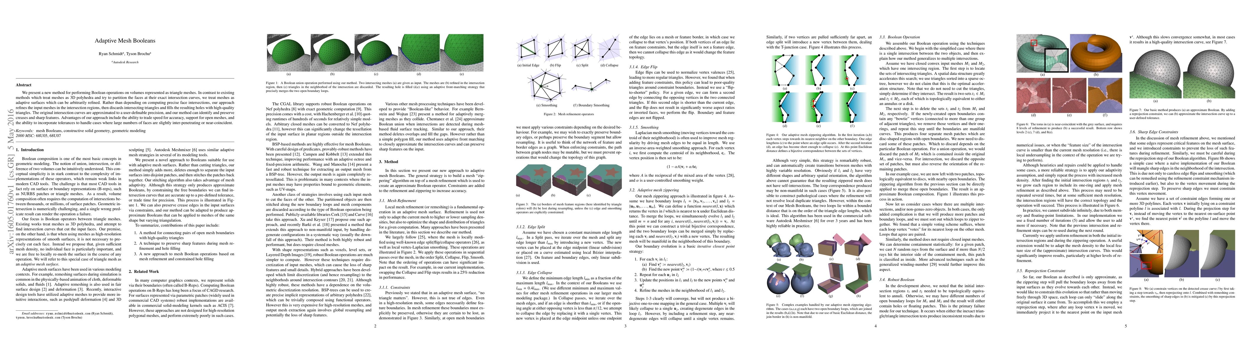 Researchers present a new method for performing Boolean operations on triangle meshes by refining input meshes in intersection regions, discarding intersecting triangles, and filling holes with high-quality triangles.