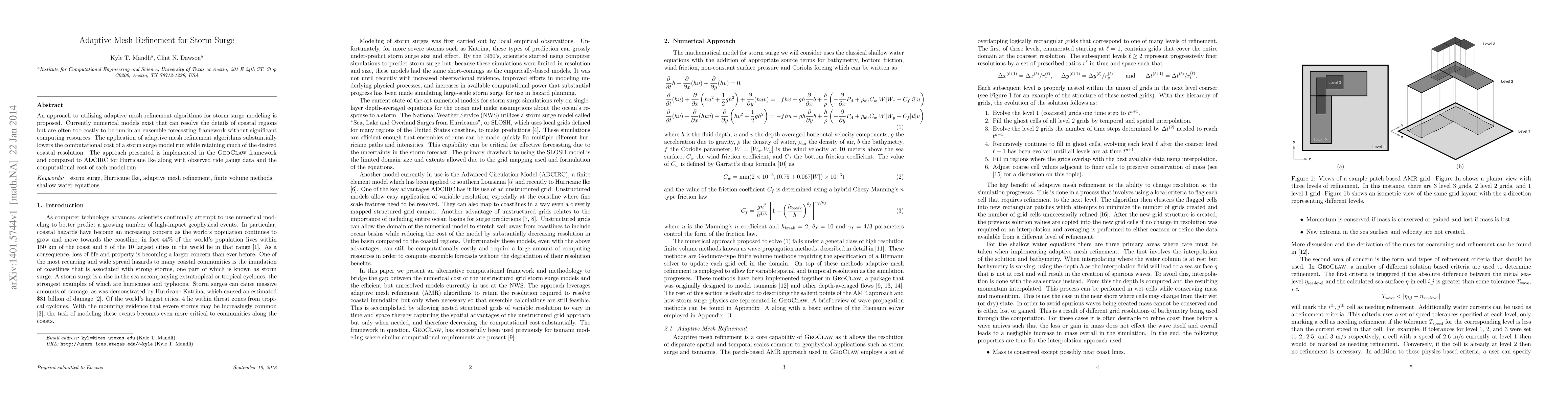 This paper proposes adaptive mesh refinement algorithms to improve storm surge modeling, reducing computational costs while maintaining coastal resolution. The method is implemented in the \geoclaw framework and compared to \adcirc for Hurricane Ike, demonstrating its effectiveness against observed tide gauge data.
