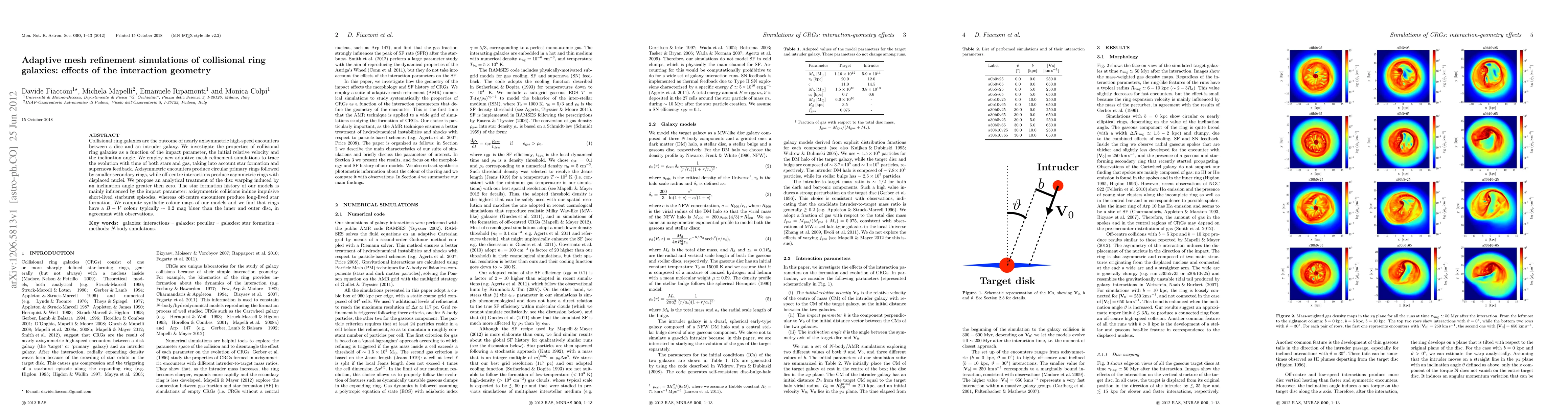 Collisional ring galaxies are the outcome of nearly axisymmetric high-speed encounters between a disc and an intruder galaxy. We investigate the properties of collisional ring galaxies as a function of the impact parameter, the initial relative velocity and the inclination angle. We employ new adaptive mesh refinement simulations to trace the evolution with time of both stars and gas, taking into account star formation and supernova feedback. Axisymmetric encounters produce circular primary rings followed by smaller secondary rings, while off-centre interactions produce asymmetric rings with displaced nuclei. We propose an analytical treatment of the disc warping induced by an inclination angle greater then zero. The star formation history of our models is mainly influenced by the impact parameter: axisymmetric collisions induce impulsive short-lived starburst episodes, whereas off-centre encounters produce long-lived star formation. We compute synthetic colour maps of our models and we find that rings have a B-V colour typically ~0.2 mag bluer than the inner and outer disc, in agreement with observations.