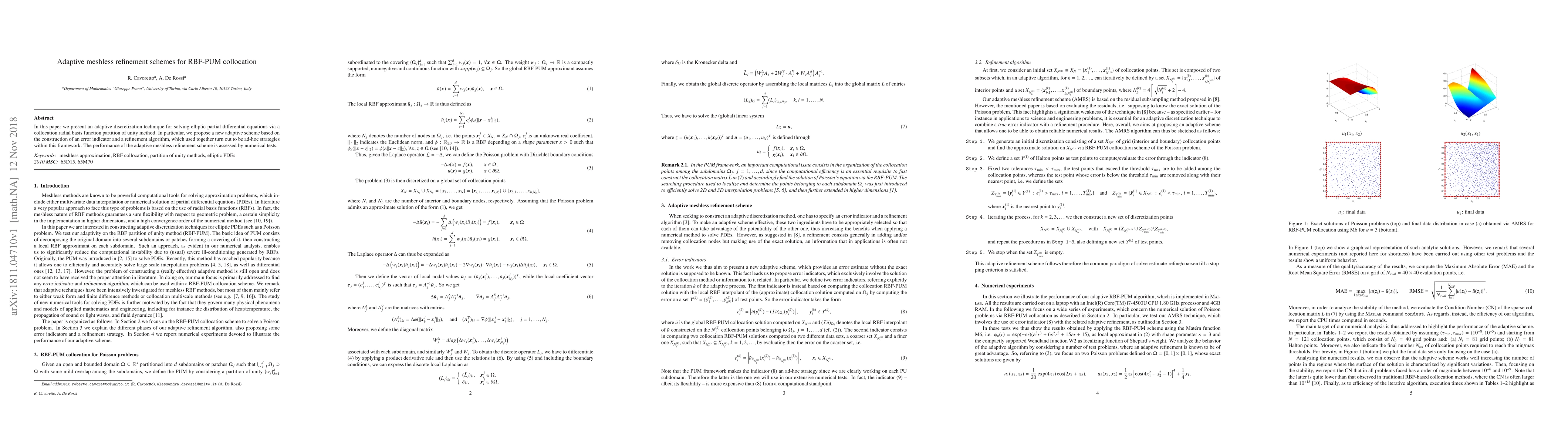This paper introduces an adaptive meshless refinement technique for solving elliptic partial differential equations using the collocation radial basis function partition of unity method. The proposed scheme employs an error indicator and a refinement algorithm to improve accuracy and efficiency, which is validated through numerical tests.