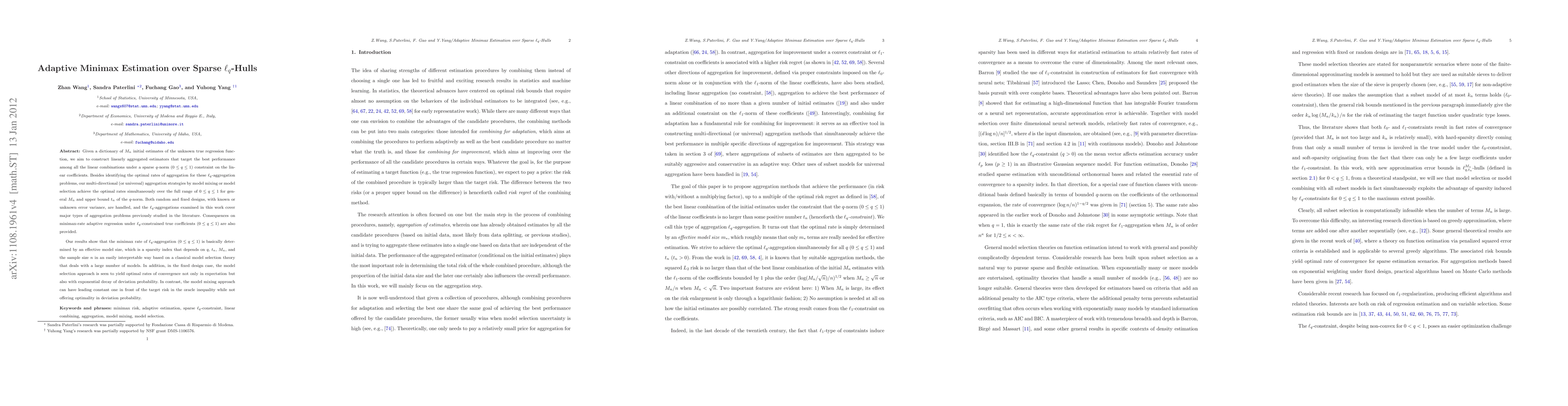 This paper develops adaptive minimax estimation techniques for sparse $\ell_q$-hulls in regression, proposing optimal aggregation strategies for linear combinations of initial estimates under $q$-norm constraints. The study achieves optimal rates of convergence for both model mixing and selection across the $0 \leq q \leq 1$ range, demonstrating effective model size determination based on classical model selection theory.