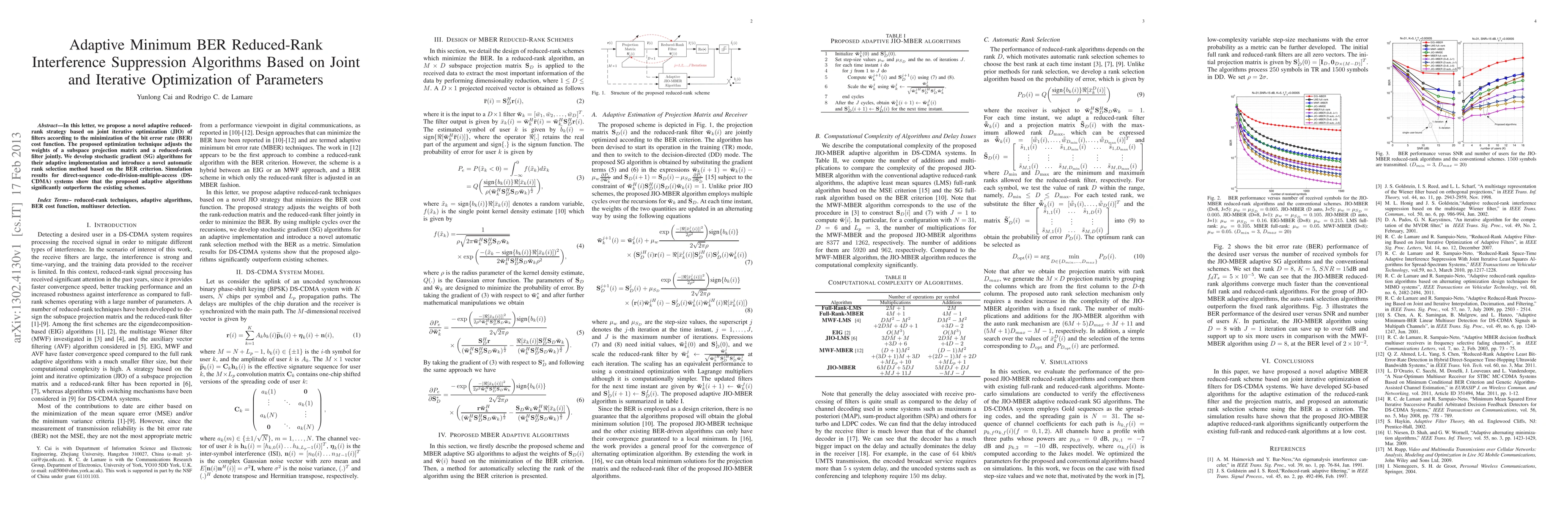 This paper proposes adaptive reduced-rank interference suppression algorithms based on joint iterative optimization to minimize the bit error rate (BER). The developed stochastic gradient algorithms and automatic rank selection method significantly outperform existing schemes in DS-CDMA systems.