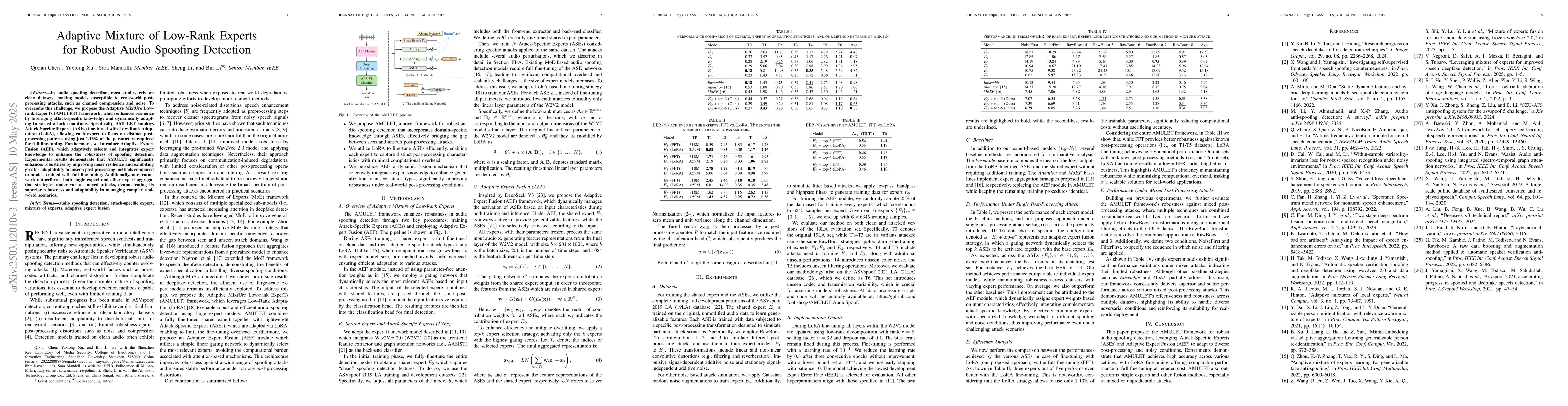 The paper proposes AMULET, a framework for robust audio spoofing detection that incorporates domain-specific knowledge through Attack-Specific Experts (ASEs) and employs Adaptive Expert Fusion (AEF). It trains a shared expert (E0) on clean data and adapts it to specific attacks using Low-Rank Adaptation (LoRA) for ASEs, avoiding significant computational overhead. AEF dynamically manages the activation of ASEs based on input characteristics.