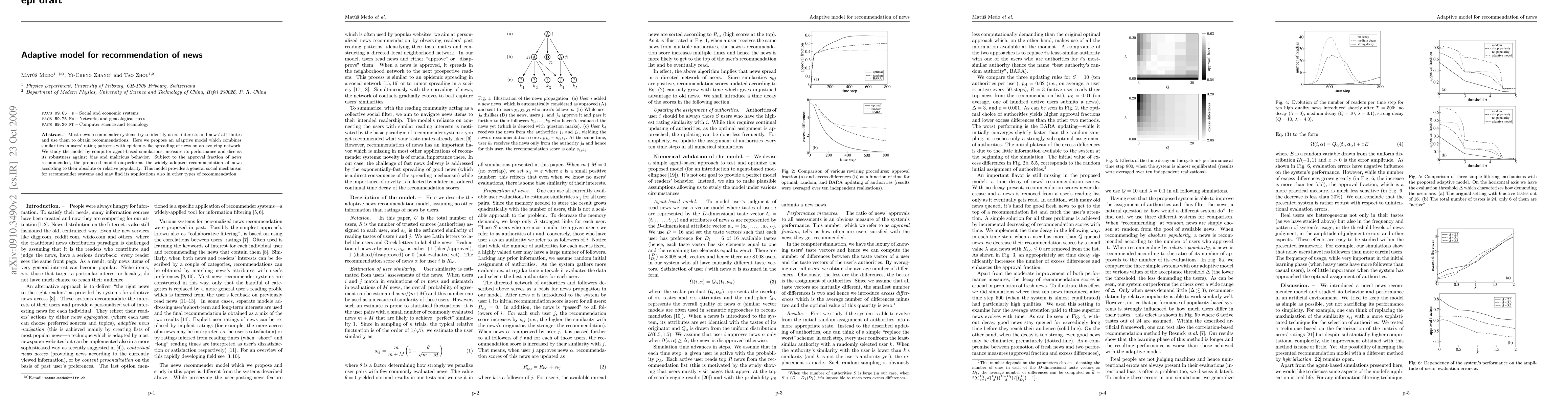 A new adaptive model for news recommendations outperforms traditional methods by considering users' rating patterns and news spreading on evolving networks. It provides a general social mechanism for recommender systems with potential applications in other types of recommendations.