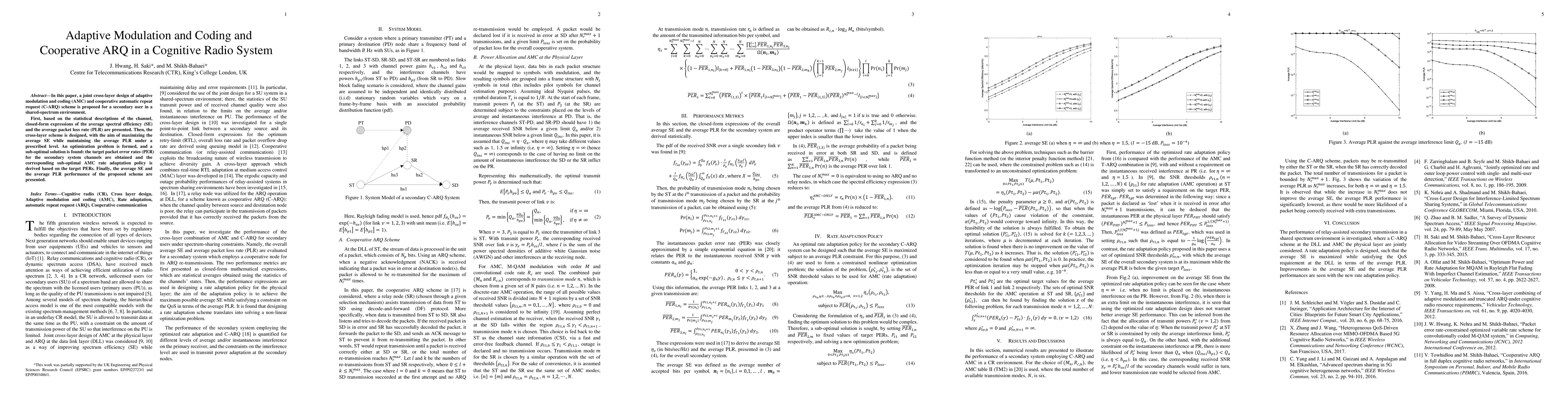 This paper proposes a joint cross-layer design of adaptive modulation and coding (AMC) and cooperative automatic repeat request (C-ARQ) for a secondary user in a cognitive radio system. The study aims to maximize average spectral efficiency while maintaining packet loss rates, deriving a sub-optimal AMC rate adaptation policy based on target packet error rates.
