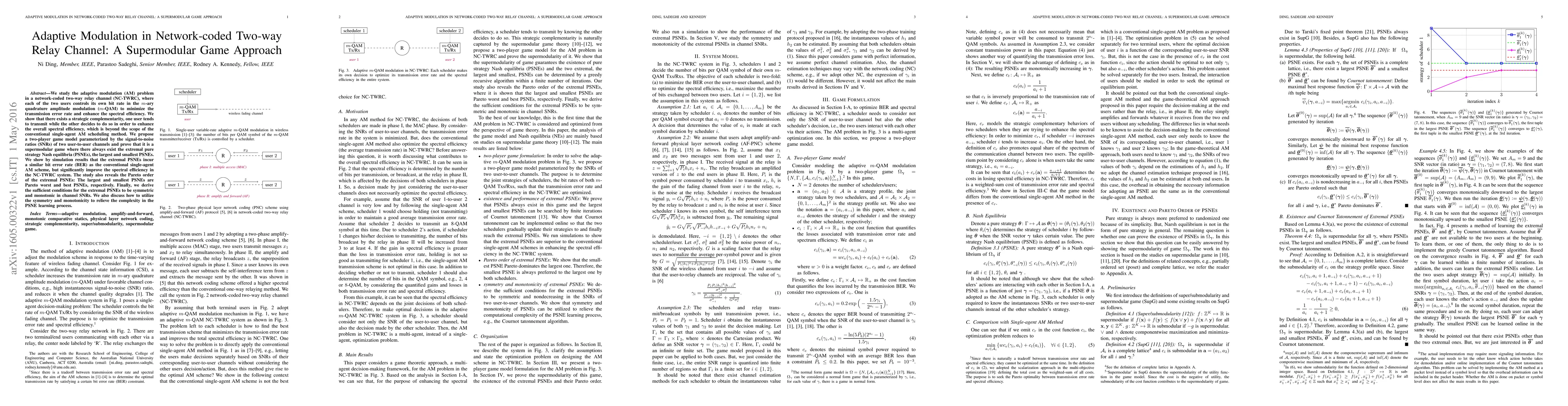 Researchers develop a game approach to optimize adaptive modulation in network-coded two-way relay channels, finding that users can work together to improve spectral efficiency while maintaining similar error rates.