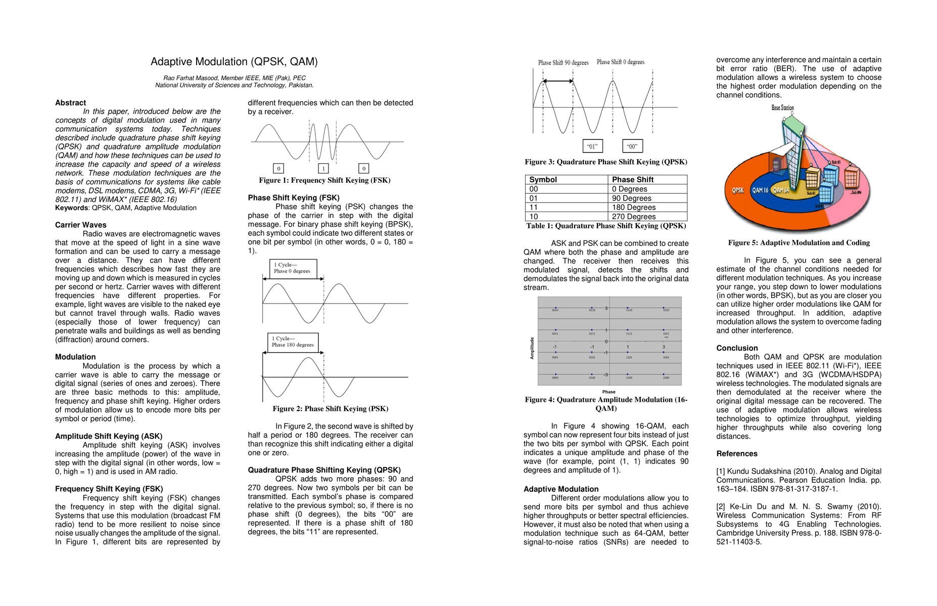 This paper explores adaptive modulation techniques, including QPSK and QAM, which enhance the capacity and speed of wireless networks, underpinning technologies like Wi-Fi and WiMAX. These methods are crucial for modern communication systems such as cable and DSL modems.