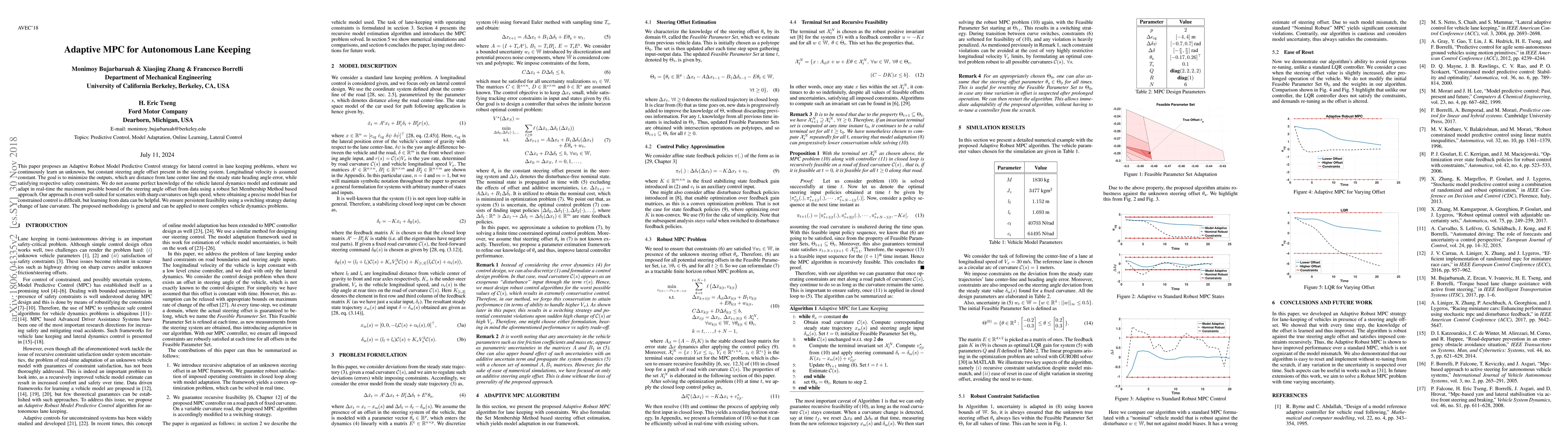 This paper introduces an Adaptive Robust Model Predictive Control strategy for autonomous lane keeping, focusing on learning and adapting to an unknown steering angle offset. The method aims to minimize lane deviation and heading angle error while ensuring safety and feasibility through real-time adaptation and a switching strategy for varying curvatures.