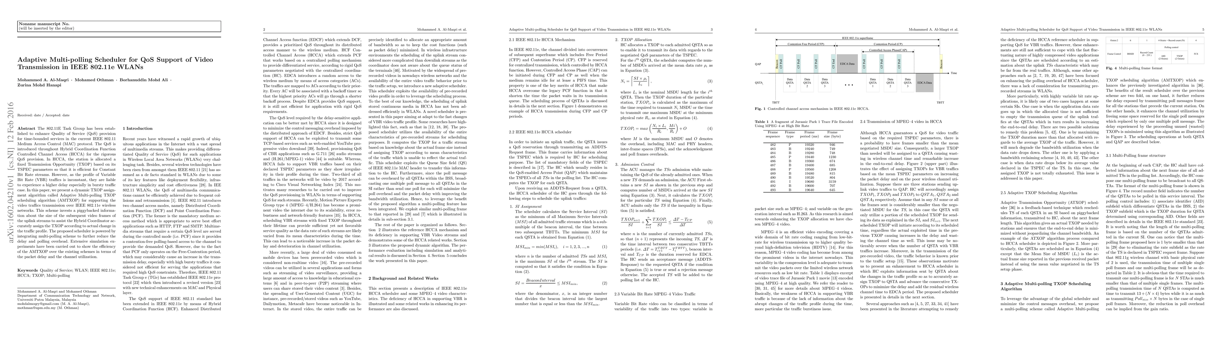 The 802.11E Task Group has been established to enhance Quality of Service (QoS) provision for time-bounded services in the current IEEE 802.11 Medium Access Control (MAC) protocol. The QoS is introduced throughout Hybrid Coordination Function Controlled Channel Access (HCCA) for the rigorous QoS provision. In HCCA, the station is allocated a fixed Transmission Opportunity (TXOP) based on its TSPEC parameters so that it is efficient for Constant Bit Rate streams. However, as the profile of Variable Bit Rate (VBR) traffics is inconstant, they are liable to experience a higher delay especially in bursty traffic case. In this paper, we present a dynamic TXOP assignment algorithm called Adaptive Multi-polling TXOP scheduling algorithm (AMTXOP) for supporting the video traffics transmission over IEEE 802.11e wireless networks. This scheme invests a piggybacked information about the size of the subsequent video frames of the uplink streams to assist the Hybrid Coordinator accurately assign the TXOP according to actual change in the traffic profile. The proposed scheduler is powered by integrating multi-polling scheme to further reduce the delay and polling overhead. Extensive simulation experiments have been carried out to show the efficiency of the AMTXOP over the existing schemes in terms of the packet delay and the channel utilization.