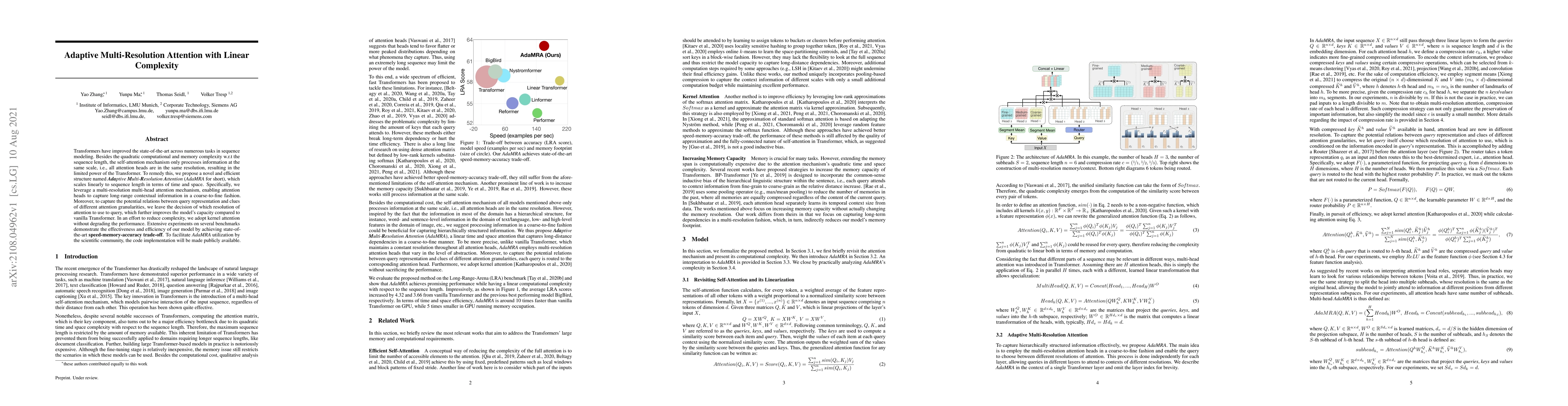 The paper proposes Adaptive Multi-Resolution Attention (AdaMRA) to address the quadratic complexity of Transformers, introducing a linear-scaling, multi-resolution mechanism that enhances contextual information capture and reduces computational complexity while maintaining performance. AdaMRA achieves state-of-the-art results across benchmarks, with plans for public code release.