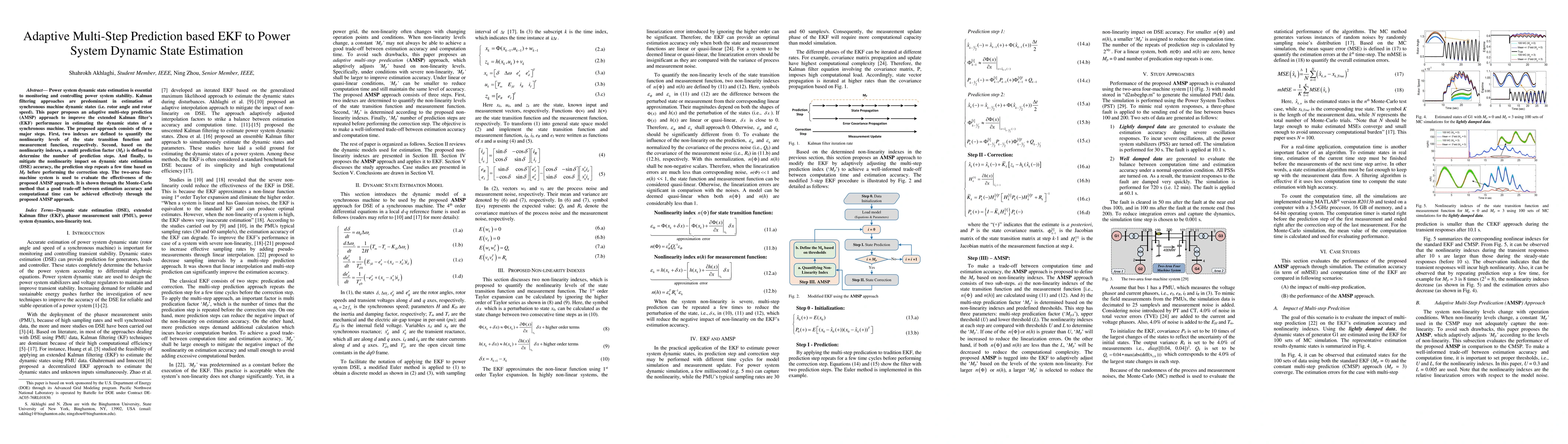 This paper proposes an adaptive multi-step prediction (AMSP) approach to enhance the extended Kalman filter's (EKF) performance in estimating the dynamic states of synchronous machines. The AMSP method defines non-linearity indexes to determine the number of prediction steps, repeating predictions to mitigate non-linearity effects, and is shown to effectively balance estimation accuracy and computational time.