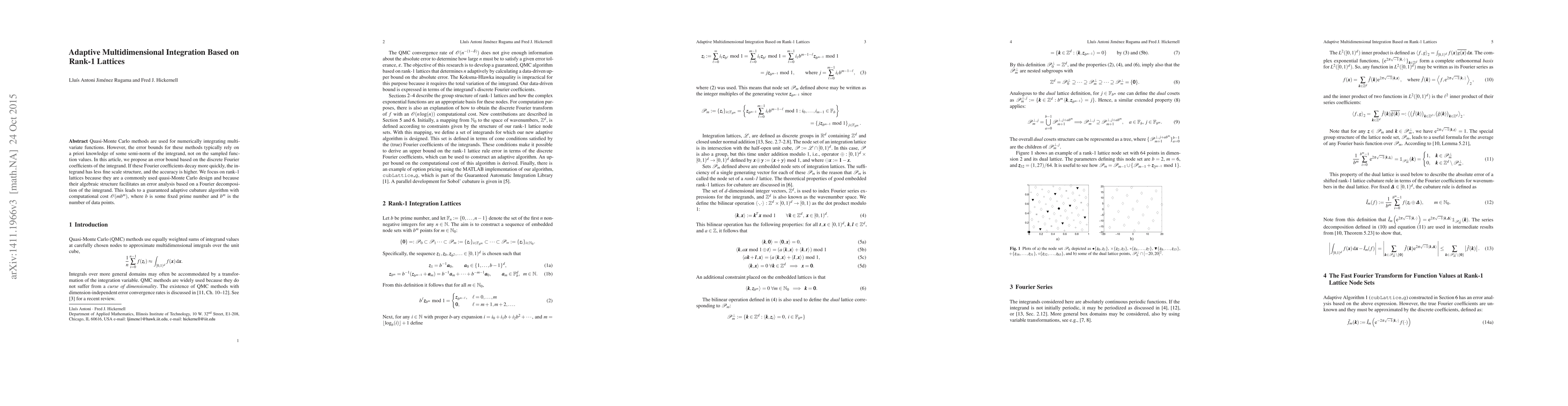 This paper proposes a new method for numerically integrating multivariate functions that adapts to the structure of the function, leading to improved accuracy. It achieves this using Fourier analysis and rank-1 lattices, allowing for an adaptive algorithm with guaranteed performance.