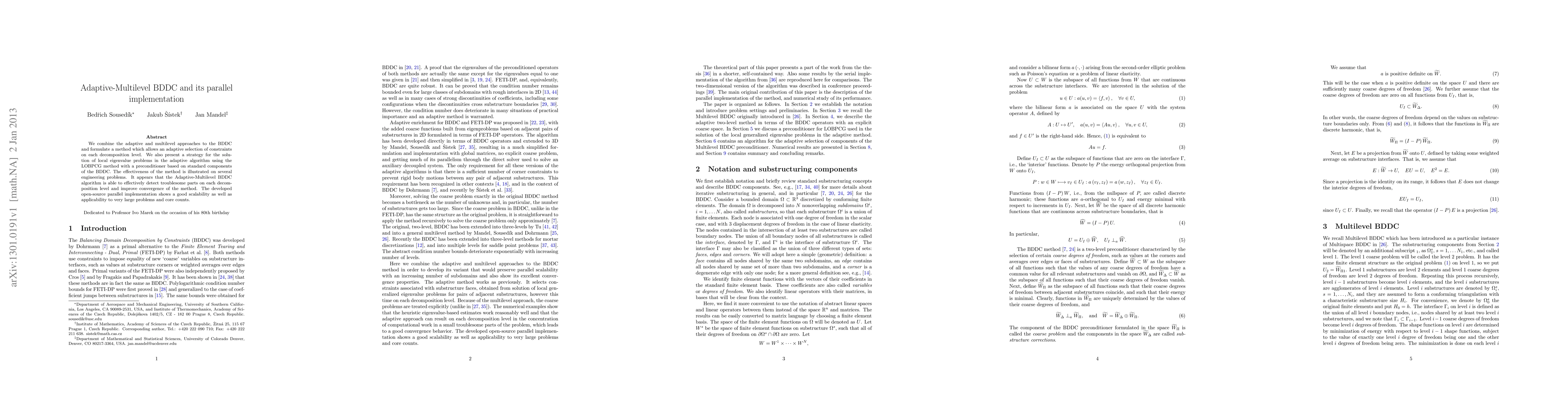 This paper introduces an adaptive-multilevel BDDC method that adaptively selects constraints on each decomposition level and employs LOBPCG with a BDDC preconditioner for local eigenvalue problems. The parallel implementation demonstrates scalability and effectiveness for large-scale engineering problems.