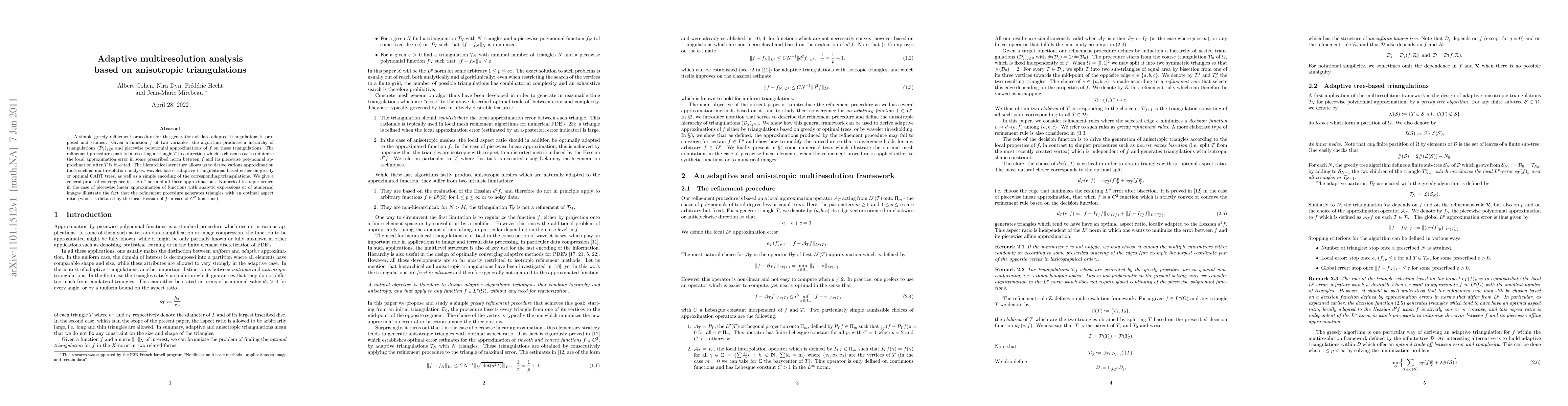 This paper proposes an adaptive multiresolution analysis method using anisotropic triangulations, which produces a hierarchy of approximations with improved accuracy, and demonstrates its effectiveness through numerical tests.