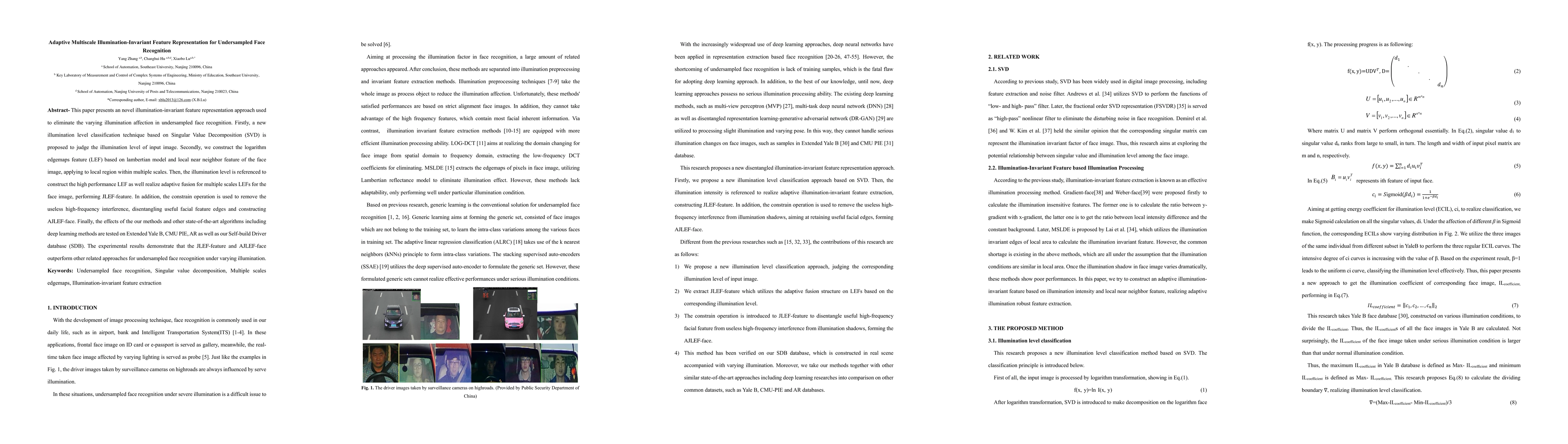 This paper presents an novel illumination-invariant feature representation approach used to eliminate the varying illumination affection in undersampled face recognition. Firstly, a new illumination level classification technique based on Singular Value Decomposition (SVD) is proposed to judge the illumination level of input image. Secondly, we construct the logarithm edgemaps feature (LEF) based on lambertian model and local near neighbor feature of the face image, applying to local region within multiple scales. Then, the illumination level is referenced to construct the high performance LEF as well realize adaptive fusion for multiple scales LEFs for the face image, performing JLEF-feature. In addition, the constrain operation is used to remove the useless high-frequency interference, disentangling useful facial feature edges and constructing AJLEF-face. Finally, the effects of the our methods and other state-of-the-art algorithms including deep learning methods are tested on Extended Yale B, CMU PIE, AR as well as our Self-build Driver database (SDB). The experimental results demonstrate that the JLEF-feature and AJLEF-face outperform other related approaches for undersampled face recognition under varying illumination.