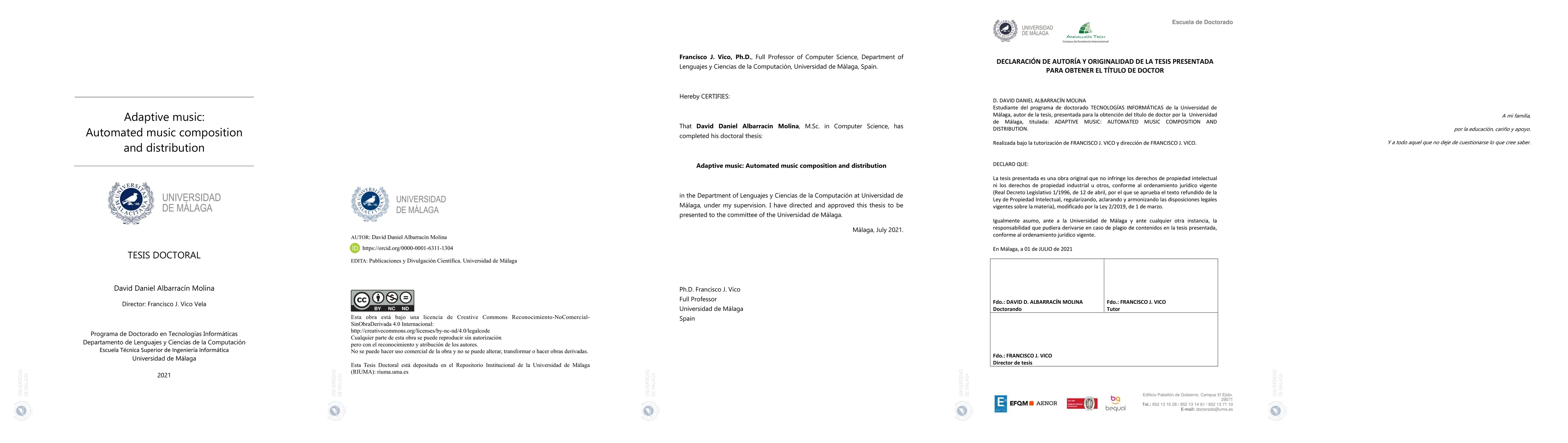 Creativity, or the ability to produce new useful ideas, is commonly associated to the human being; but there are many other examples in nature where this phenomenon can be observed. Inspired by this fact, in engineering and particularly in computational sciences, many different models have been developed to tackle a number of problems. Composing music, a form of art broadly present along the human history, is the main topic addressed in this thesis. Taking advantage of the kind of ideas that bring diversity and creativity to nature and computation, we present Melomics: an algorithmic composition method based on evolutionary search. The solutions have a genetic encoding based on formal grammars and these are interpreted in a complex developmental process followed by a fitness assessment, to produce valid music compositions in standard formats. The system has exhibited a high creative power and versatility to produce music of different types and it has been tested, proving on many occasions the outcome to be indistinguishable from the music made by human composers. The system has also enabled the emergence of a set of completely novel applications: from effective tools to help anyone to easily obtain the precise music that they need, to radically new uses, such as adaptive music for therapy, exercise, amusement and many others. It seems clear that automated composition is an active research area and that countless new uses will be discovered.