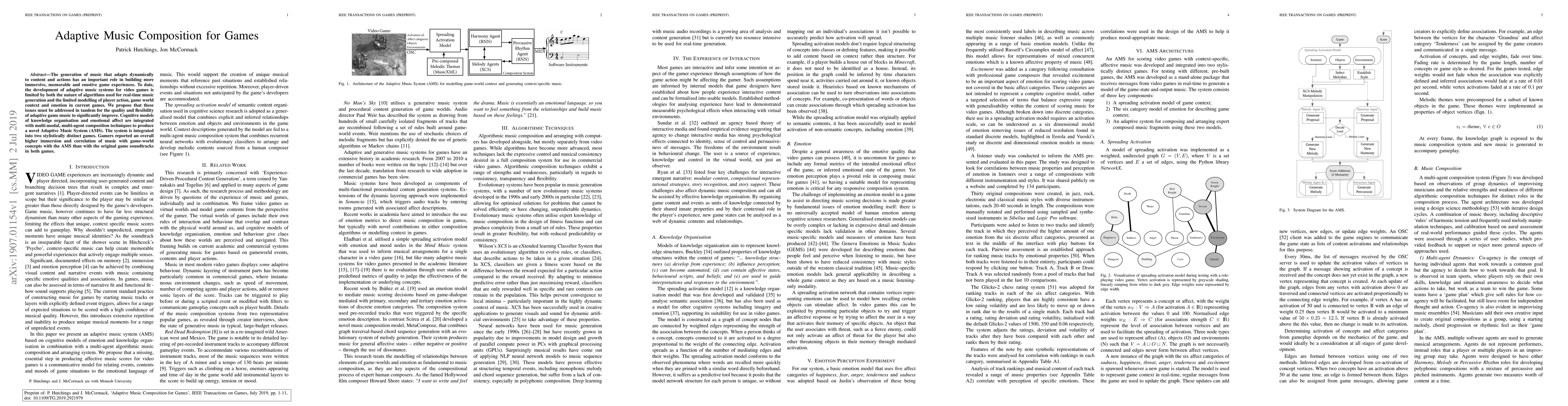 The generation of music that adapts dynamically to content and actions has an important role in building more immersive, memorable and emotive game experiences. To date, the development of adaptive music systems for video games is limited by both the nature of algorithms used for real-time music generation and the limited modelling of player action, game world context and emotion in current games. We propose that these issues must be addressed in tandem for the quality and flexibility of adaptive game music to significantly improve. Cognitive models of knowledge organisation and emotional affect are integrated with multi-modal, multi-agent composition techniques to produce a novel Adaptive Music System (AMS). The system is integrated into two stylistically distinct games. Gamers reported an overall higher immersion and correlation of music with game-world concepts with the AMS than with the original game soundtracks in both games.