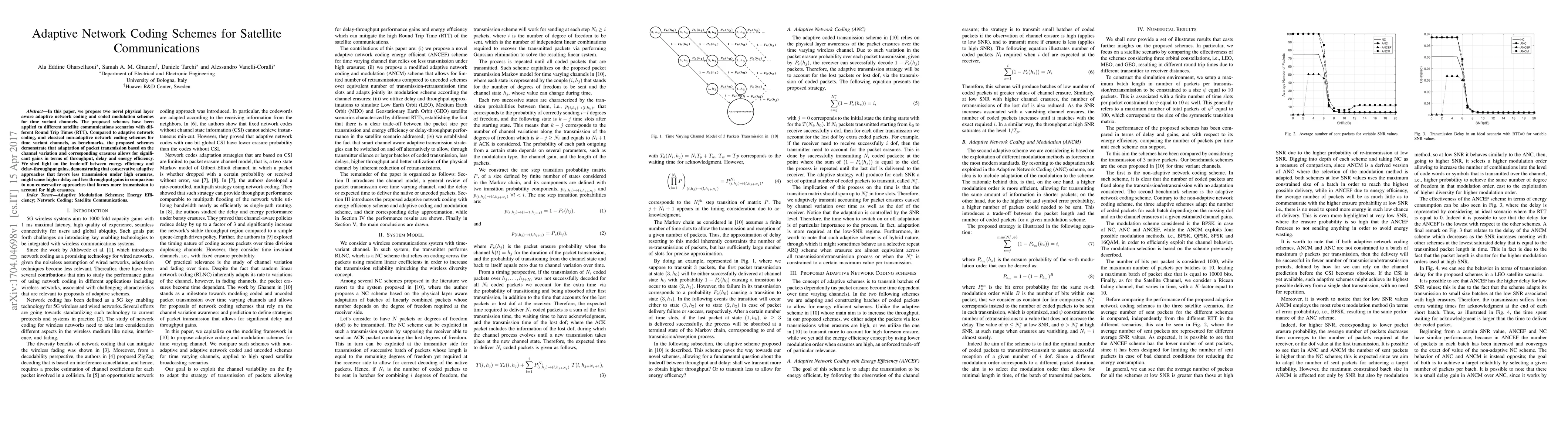 In this paper, we propose two novel physical layer aware adaptive network coding and coded modulation schemes for time variant channels. The proposed schemes have been applied to different satellite communications scenarios with different Round Trip Times (RTT). Compared to adaptive network coding, and classical non-adaptive network coding schemes for time variant channels, as benchmarks, the proposed schemes demonstrate that adaptation of packet transmission based on the channel variation and corresponding erasures allows for significant gains in terms of throughput, delay and energy efficiency. We shed light on the trade-off between energy efficiency and delay-throughput gains, demonstrating that conservative adaptive approaches that favors less transmission under high erasures, might cause higher delay and less throughput gains in comparison to non-conservative approaches that favor more transmission to account for high erasures.