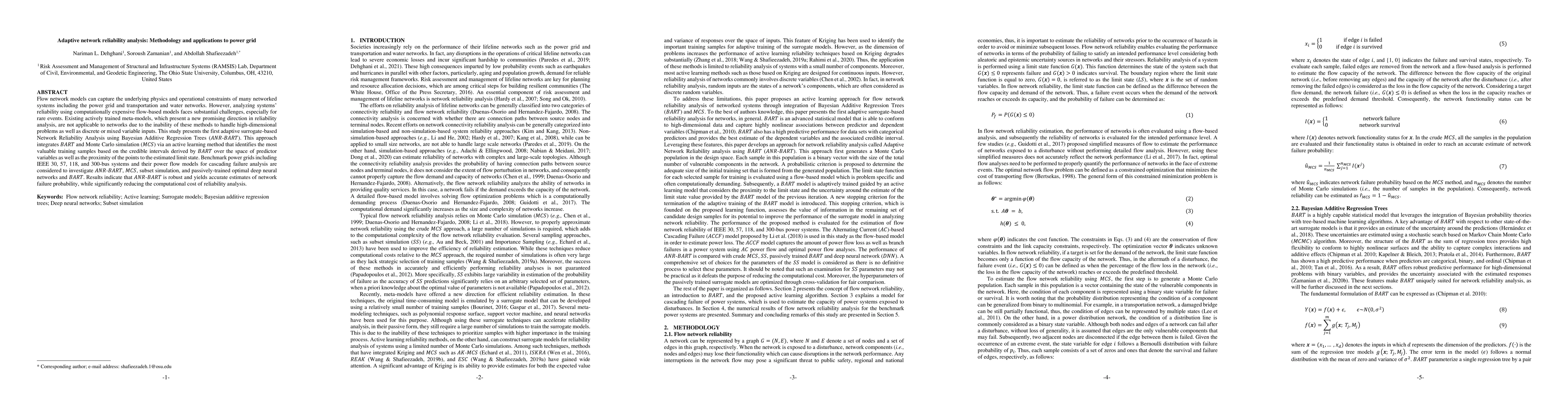This paper introduces an adaptive surrogate-based Network Reliability Analysis using Bayesian Additive Regression Trees (ANR-BART) to efficiently evaluate the reliability of power grids, addressing the limitations of existing methods in handling high-dimensional problems. The proposed method significantly reduces computational costs while providing accurate estimates of failure probabilities.