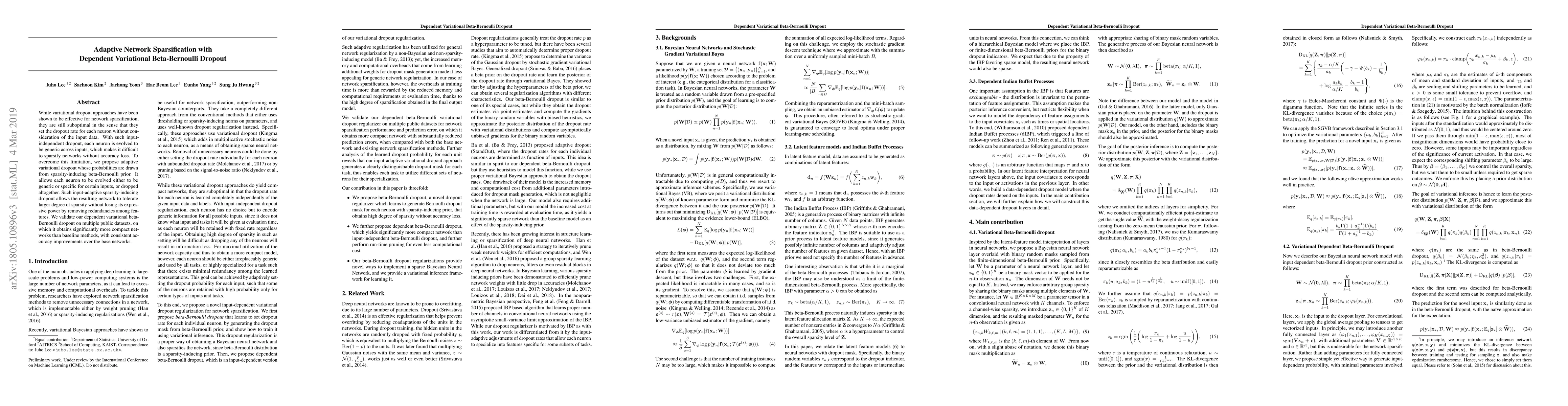 Researchers developed an adaptive variational dropout method that uses a sparsity-inducing beta Bernoulli prior to create more efficient neural networks. This approach resulted in significantly more compact networks with consistent accuracy improvements over baseline methods.