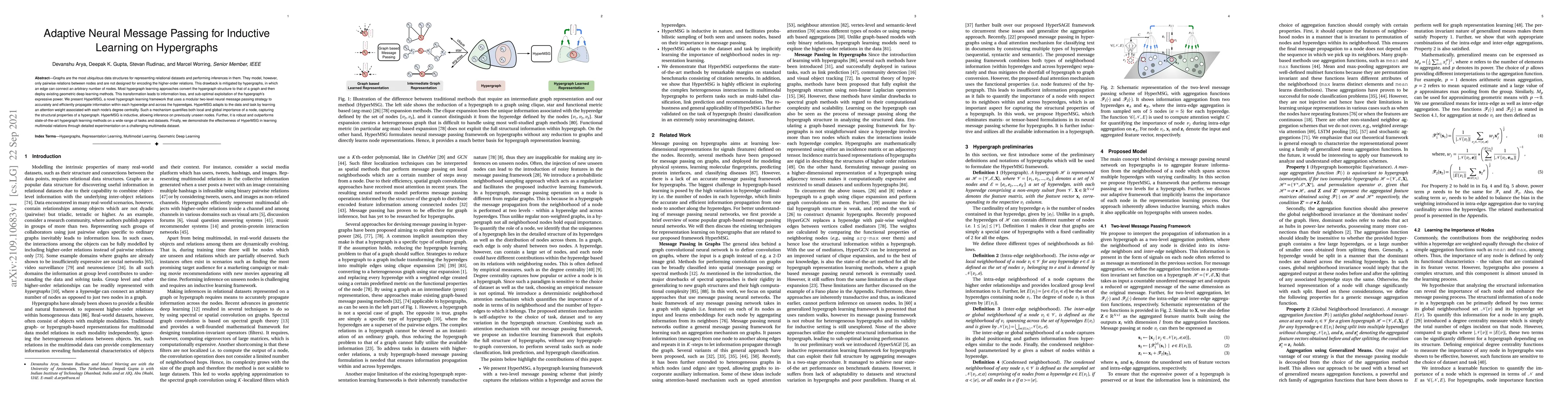 HyperMSG introduces a novel adaptive neural message passing framework for inductive learning on hypergraphs, effectively capturing higher-order relations without information loss, and outperforming existing methods on various tasks.