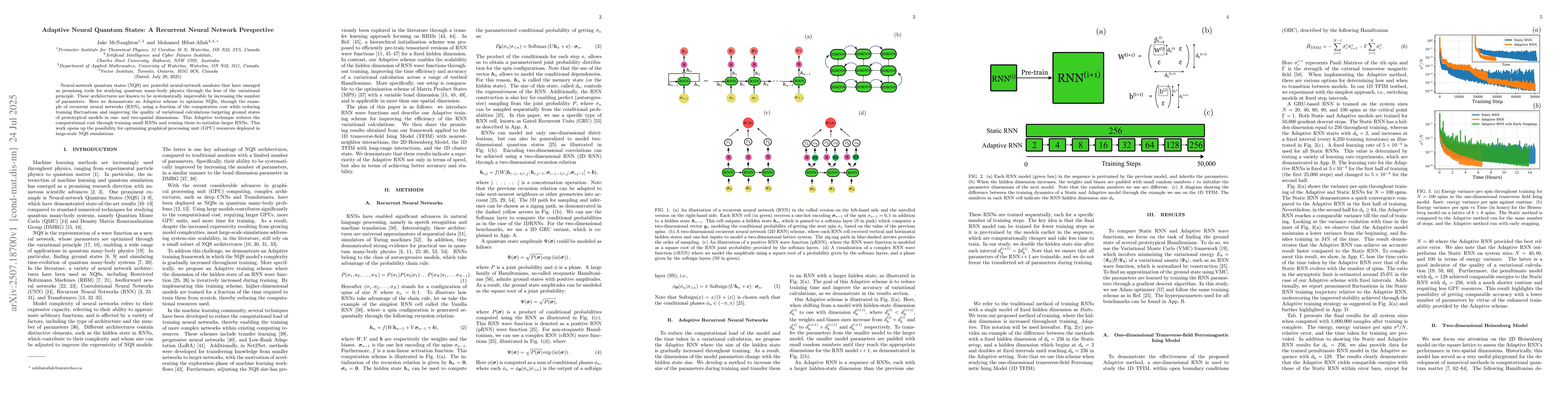 Neural-network quantum states (NQS) are powerful neural-network ans\"atzes that have emerged as promising tools for studying quantum many-body physics through the lens of the variational principle. These architectures are known to be systematically improvable by increasing the number of parameters. Here we demonstrate an Adaptive scheme to optimize NQSs, through the example of recurrent neural networks (RNN), using a fraction of the computation cost while reducing training fluctuations and improving the quality of variational calculations targeting ground states of prototypical models in one- and two-spatial dimensions. This Adaptive technique reduces the computational cost through training small RNNs and reusing them to initialize larger RNNs. This work opens up the possibility for optimizing graphical processing unit (GPU) resources deployed in large-scale NQS simulations.
