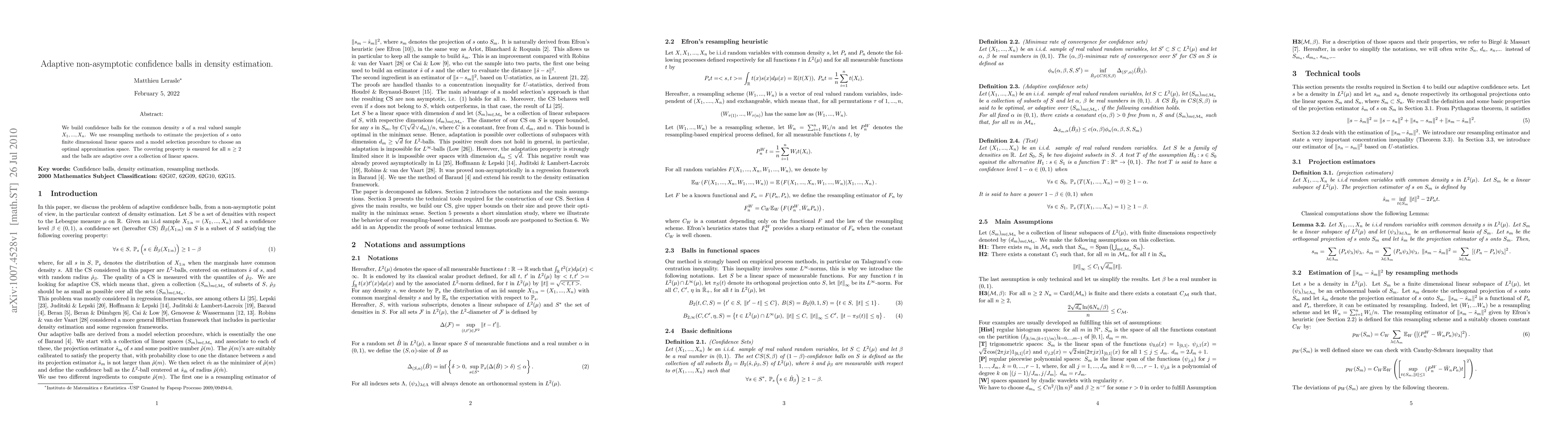 We build confidence balls for the common density $s$ of a real valued sample $X_1,...,X_n$. We use resampling methods to estimate the projection of $s$ onto finite dimensional linear spaces and a model selection procedure to choose an optimal approximation space. The covering property is ensured for all $n\geq2$ and the balls are adaptive over a collection of linear spaces.