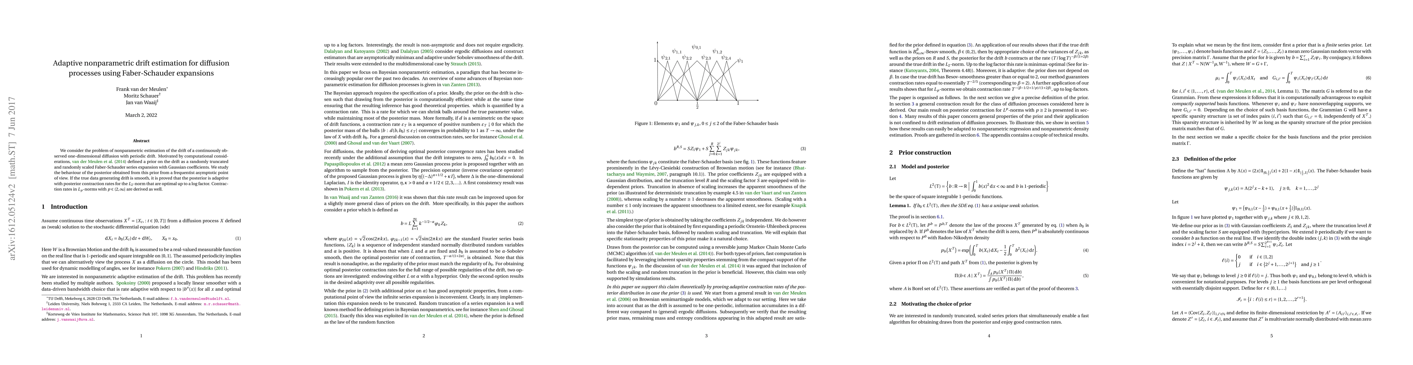 This paper investigates nonparametric estimation of the drift in a one-dimensional diffusion process using a Faber-Schauder series expansion. It demonstrates that the posterior derived from a Gaussian-coefficient prior exhibits adaptive properties and achieves optimal contraction rates for $L_2$-norm, with similar results for $L_p$-norms for $p\in (2,\infty]$.