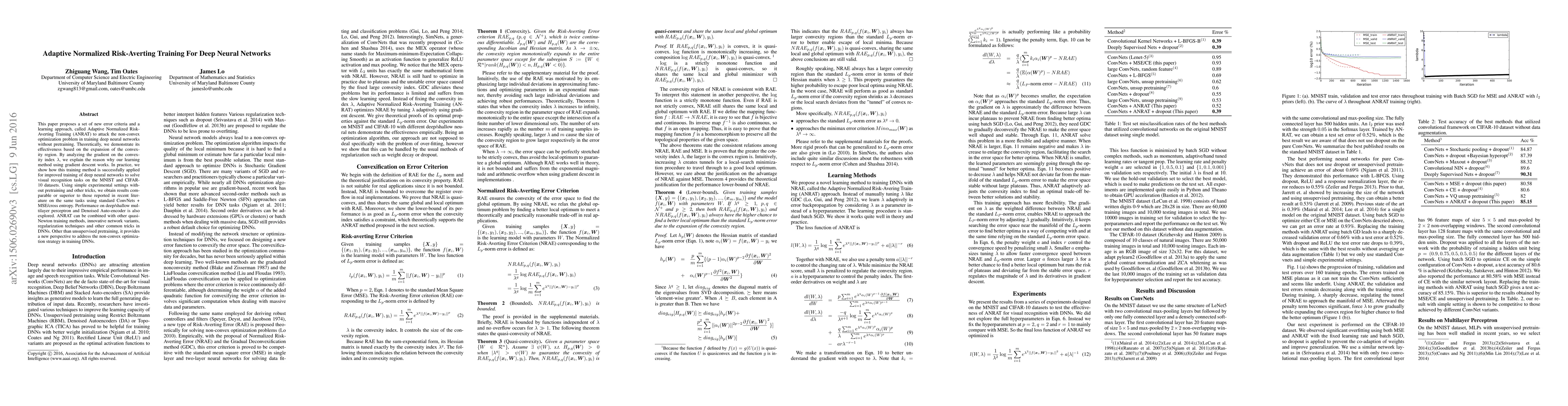This paper proposes a set of new error criteria and learning approaches, Adaptive Normalized Risk-Averting Training (ANRAT), to attack the non-convex optimization problem in training deep neural networks (DNNs). Theoretically, we demonstrate its effectiveness on global and local convexity lower-bounded by the standard $L_p$-norm error. By analyzing the gradient on the convexity index $\lambda$, we explain the reason why to learn $\lambda$ adaptively using gradient descent works. In practice, we show how this method improves training of deep neural networks to solve visual recognition tasks on the MNIST and CIFAR-10 datasets. Without using pretraining or other tricks, we obtain results comparable or superior to those reported in recent literature on the same tasks using standard ConvNets + MSE/cross entropy. Performance on deep/shallow multilayer perceptrons and Denoised Auto-encoders is also explored. ANRAT can be combined with other quasi-Newton training methods, innovative network variants, regularization techniques and other specific tricks in DNNs. Other than unsupervised pretraining, it provides a new perspective to address the non-convex optimization problem in DNNs.