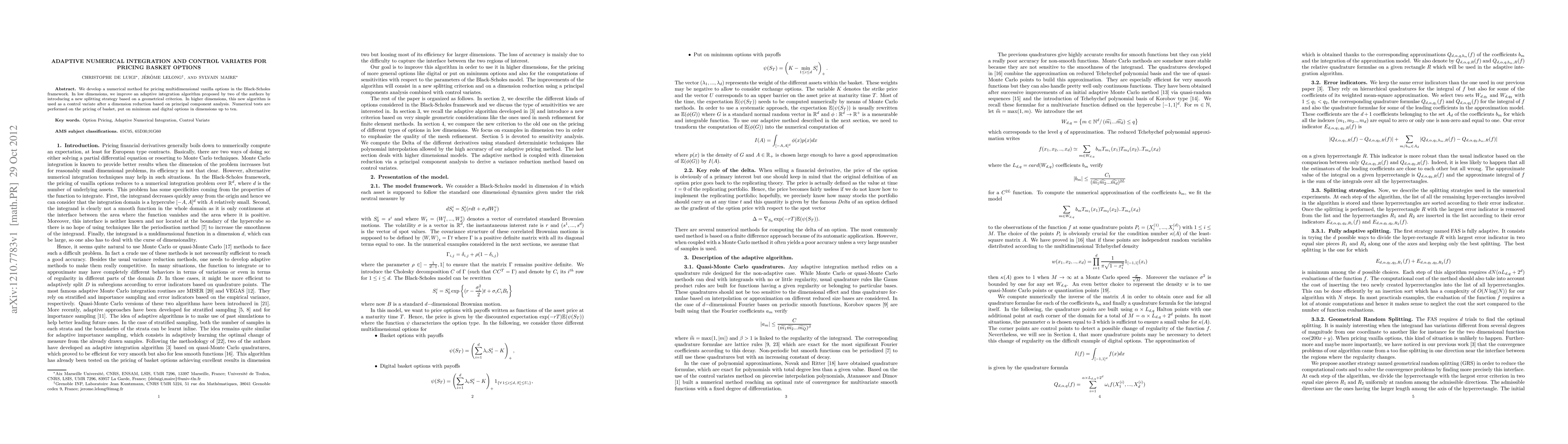 We develop a numerical method for pricing multidimensional vanilla options in the Black-Scholes framework. In low dimensions, we improve an adaptive integration algorithm proposed by two of the authors by introducing a new splitting strategy based on a geometrical criterion. In higher dimensions, this new algorithm is used as a control variate after a dimension reduction based on principal component analysis. Numerical tests are performed on the pricing of basket, put on minimum and digital options in dimensions up to ten.