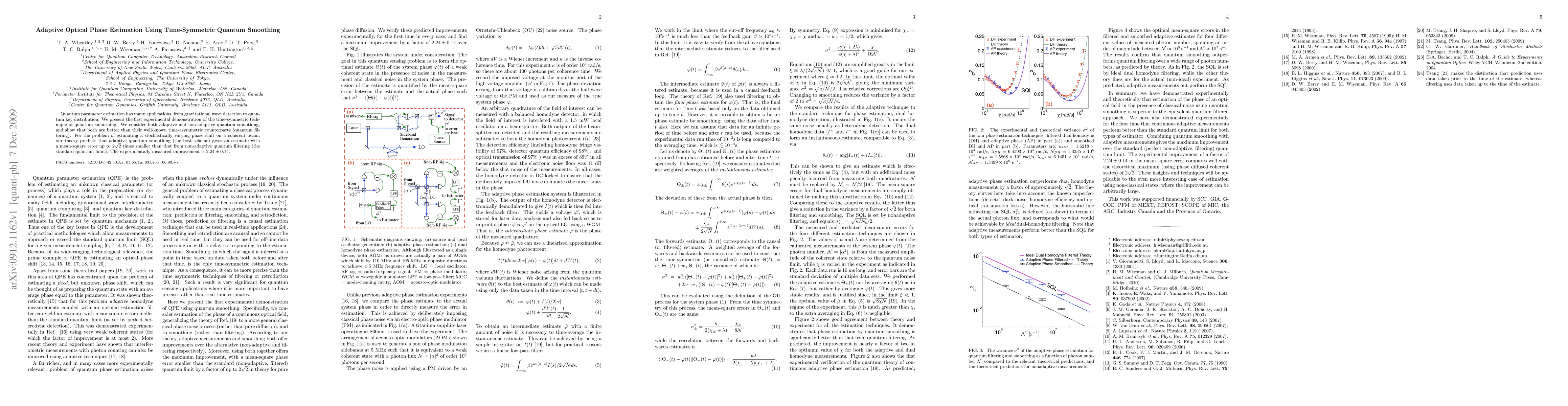 This paper demonstrates the first experimental implementation of adaptive quantum smoothing, showing it significantly outperforms traditional time-asymmetric quantum filtering in estimating a stochastically varying phase shift. The adaptive method achieves a mean-square error reduction by up to $2\sqrt{2}$ times compared to non-adaptive filtering, with an experimentally measured improvement factor of $2.24 \pm 0.14$.