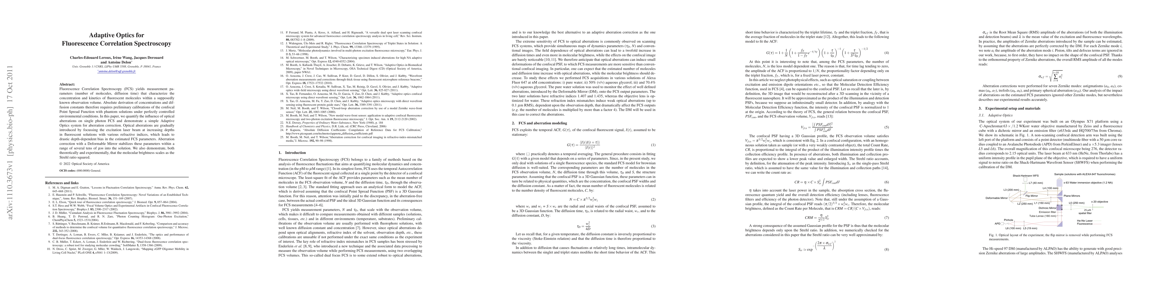 Researchers develop an Adaptive Optics system to correct optical aberrations in Fluorescence Correlation Spectroscopy, enabling accurate measurements of molecular concentration and diffusion time.