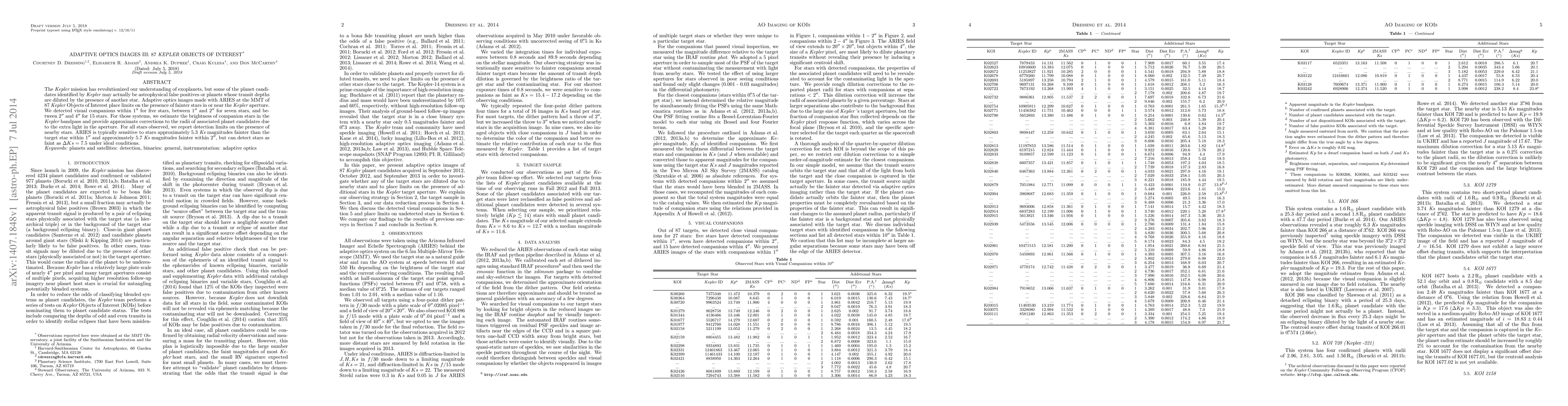 This study uses adaptive optics imaging from ARIES at the MMT to investigate 87 Kepler Objects of Interest, identifying potential false positives or diluted transit depths caused by nearby stars. The research detected visual companions for several stars and provides corrections for planet candidate radii, reporting detection limits for fainter stars in the Kepler bandpass.
