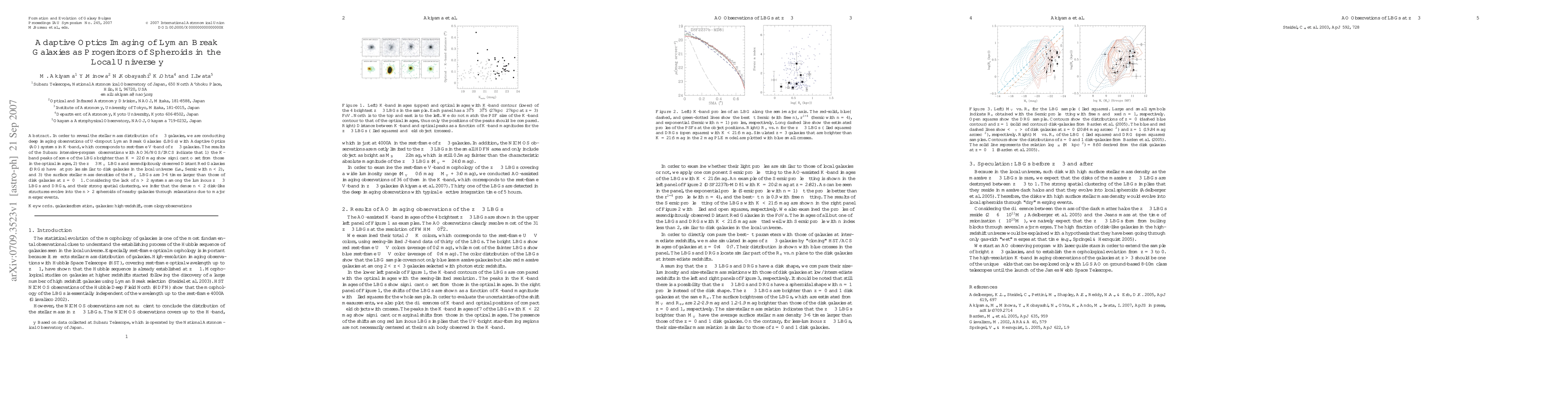 Researchers used Adaptive Optics to study Lyman Break Galaxies at z~3, finding that some have disk-like structures with flat profiles and high surface stellar mass densities, suggesting they may evolve into spheroids through major merger events.