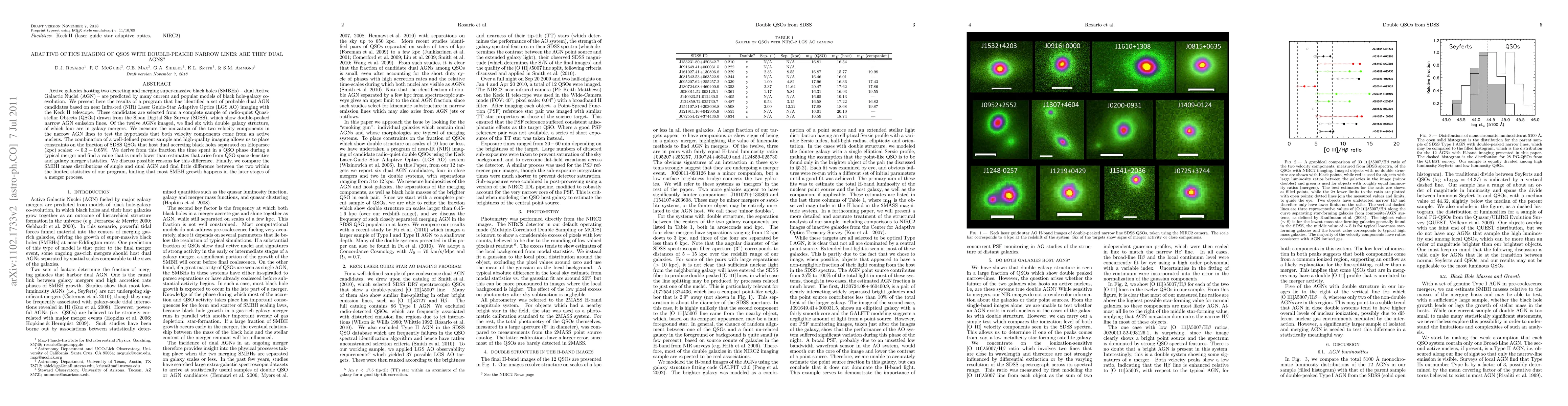 Active galaxies hosting two accreting and merging super-massive black holes (SMBHs) -- dual Active Galactic Nuclei (AGN) -- are predicted by many current and popular models of black hole-galaxy co-evolution. We present here the results of a program that has identified a set of probable dual AGN candidates based on near Infra-red (NIR) Laser Guide-Star Adaptive Optics (LGS AO) imaging with the Keck II telescope. These candidates are selected from a complete sample of radio-quiet Quasi-stellar Objects (QSOs) drawn from the Sloan Digital Sky Survey (SDSS), which show double-peaked narrow AGN emission lines. Of the twelve AGNs imaged, we find six with double galaxy structure, of which four are in galaxy mergers. We measure the ionization of the two velocity components in the narrow AGN lines to test the hypothesis that both velocity components come from an active nucleus. The combination of a well-defined parent sample and high-quality imaging allows us to place constraints on the fraction of SDSS QSOs that host dual accreting black holes separated on kiloparsec (kpc) scales: ~0.3%-0.65%. We derive from this fraction the time spent in a QSO phase during a typical merger and find a value that is much lower than estimates that arise from QSO space densities and galaxy merger statistics. We discuss possible reasons for this difference. Finally, we compare the SMBH mass distributions of single and dual AGN and find little difference between the two within the limited statistics of our program, hinting that most SMBH growth happens in the later stages of a merger process.