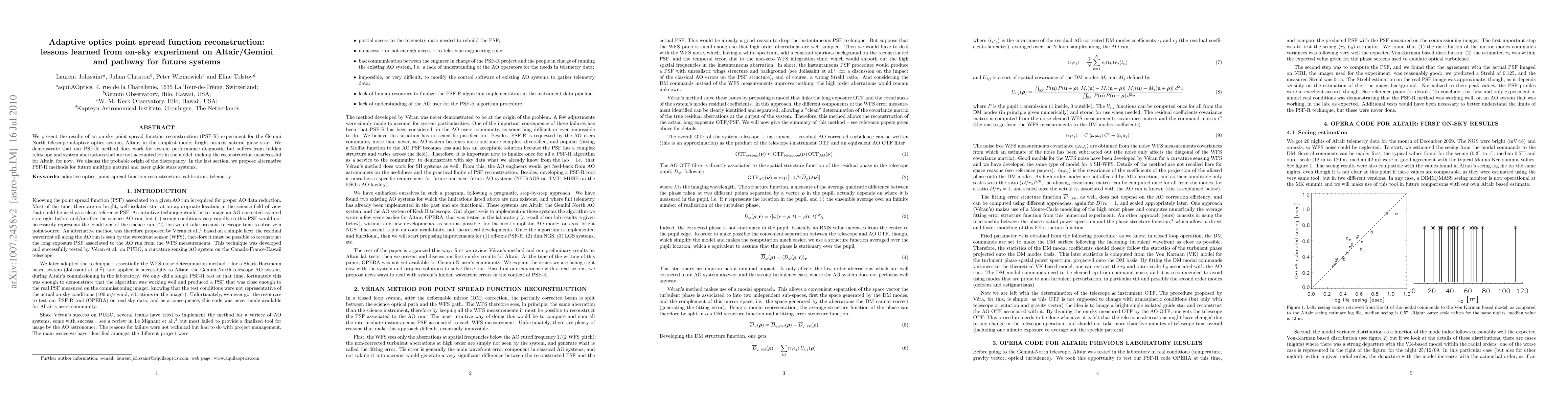 This paper reports on an on-sky experiment using the Altair adaptive optics system on the Gemini North telescope, demonstrating that while the point spread function reconstruction method works for diagnostics, it fails due to unaccounted telescope aberrations. The authors propose alternative methods for future systems employing multiple guide stars.
